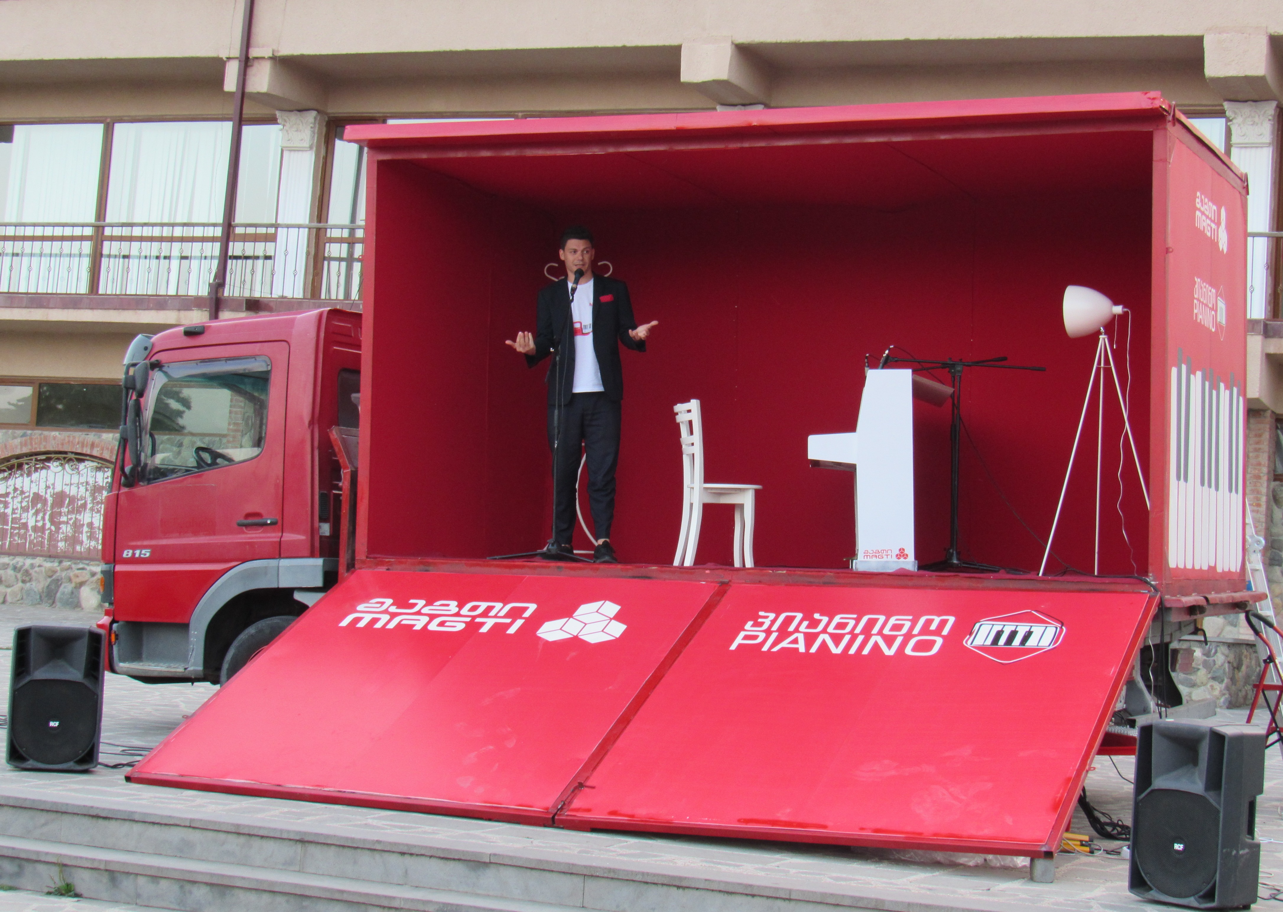 ეს იყო დიდი ზომის წითელი მოძრავი მანქანა, რომელიც წინასწარ შერჩეულ ადგილზე ტრანსფორმირდა სცენად და ღია ცის ქვეშ ყველა დაინტერესებულ მსმენელთან მიიტანა კლასიკური მუსიკა.