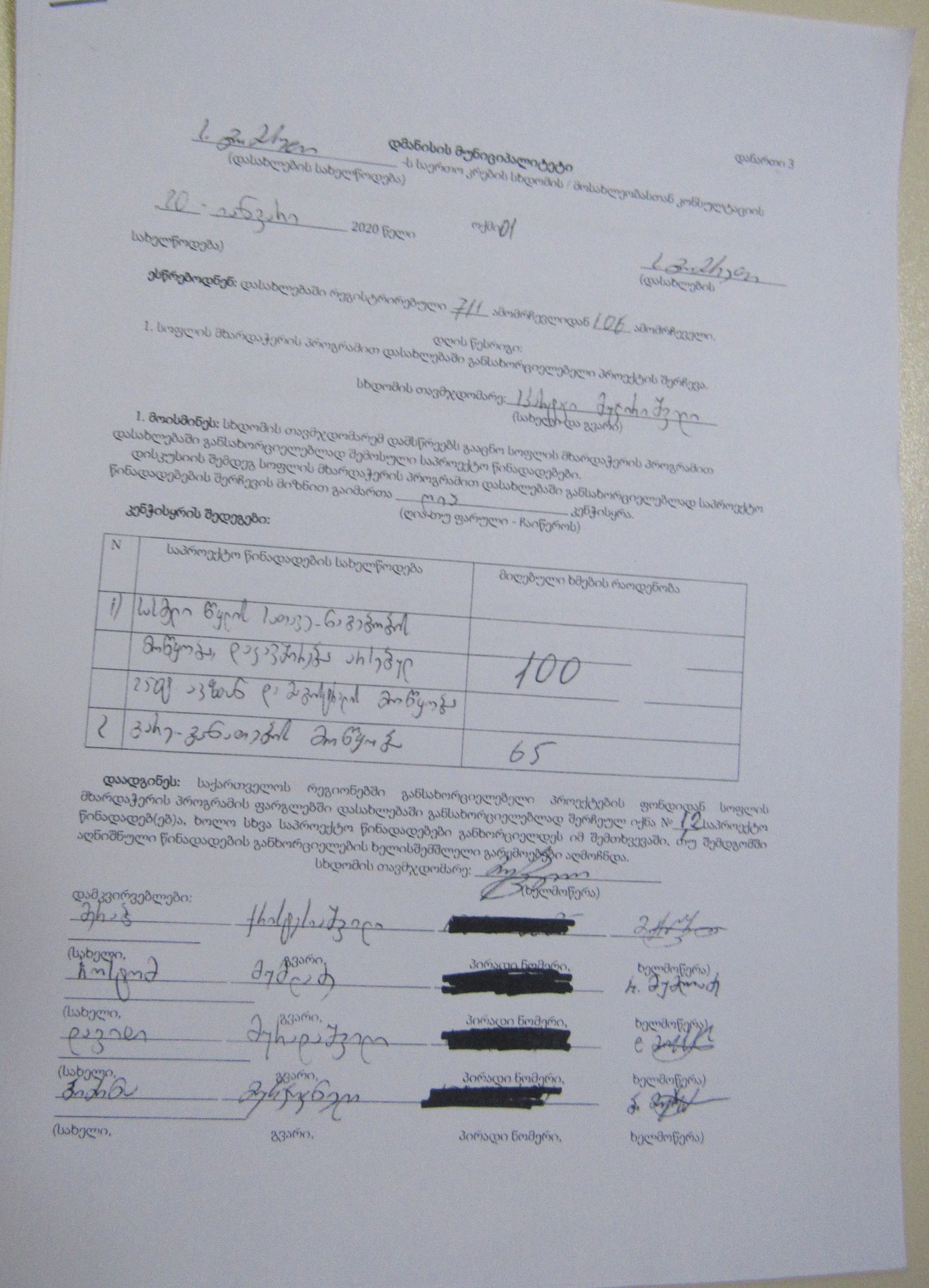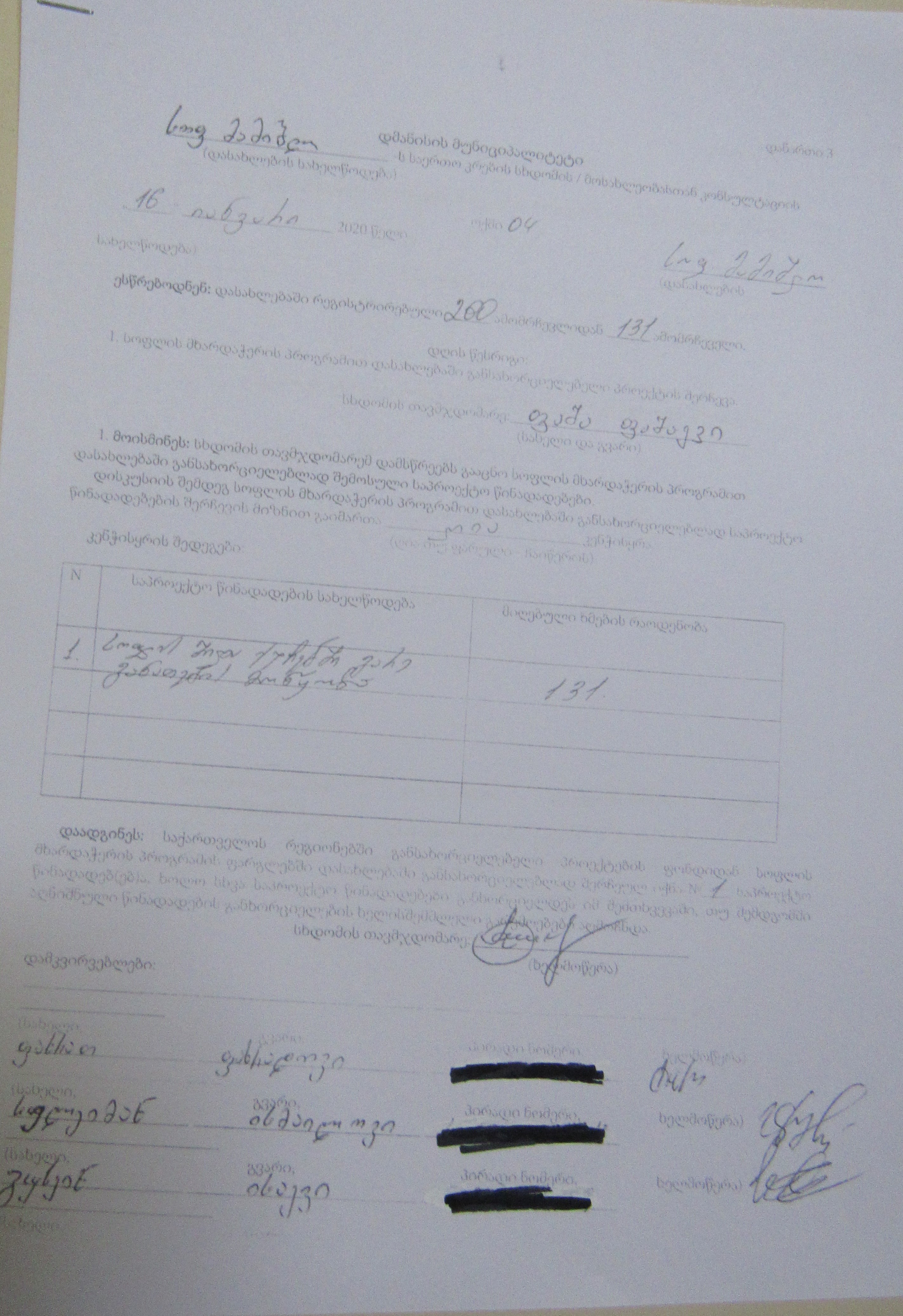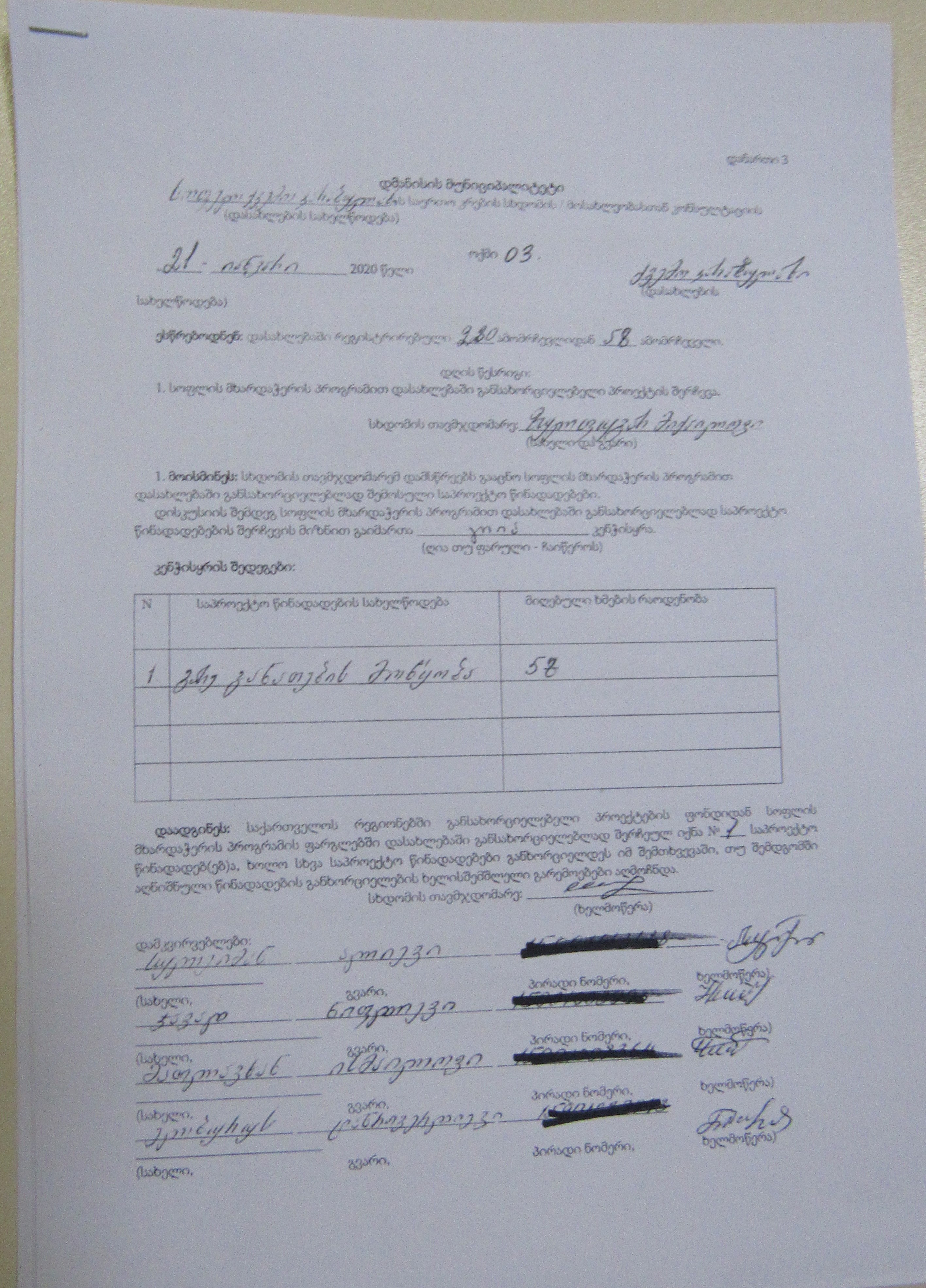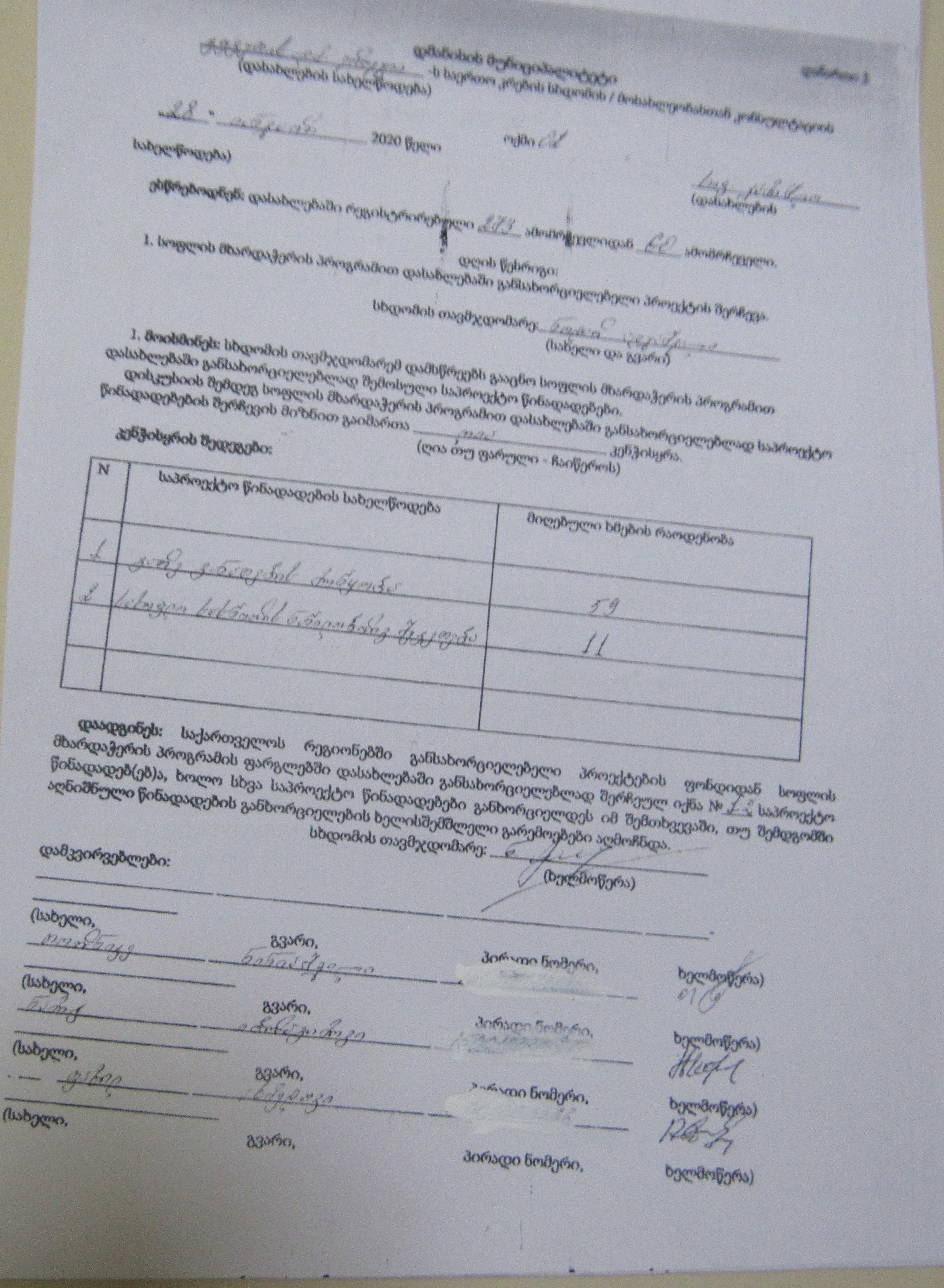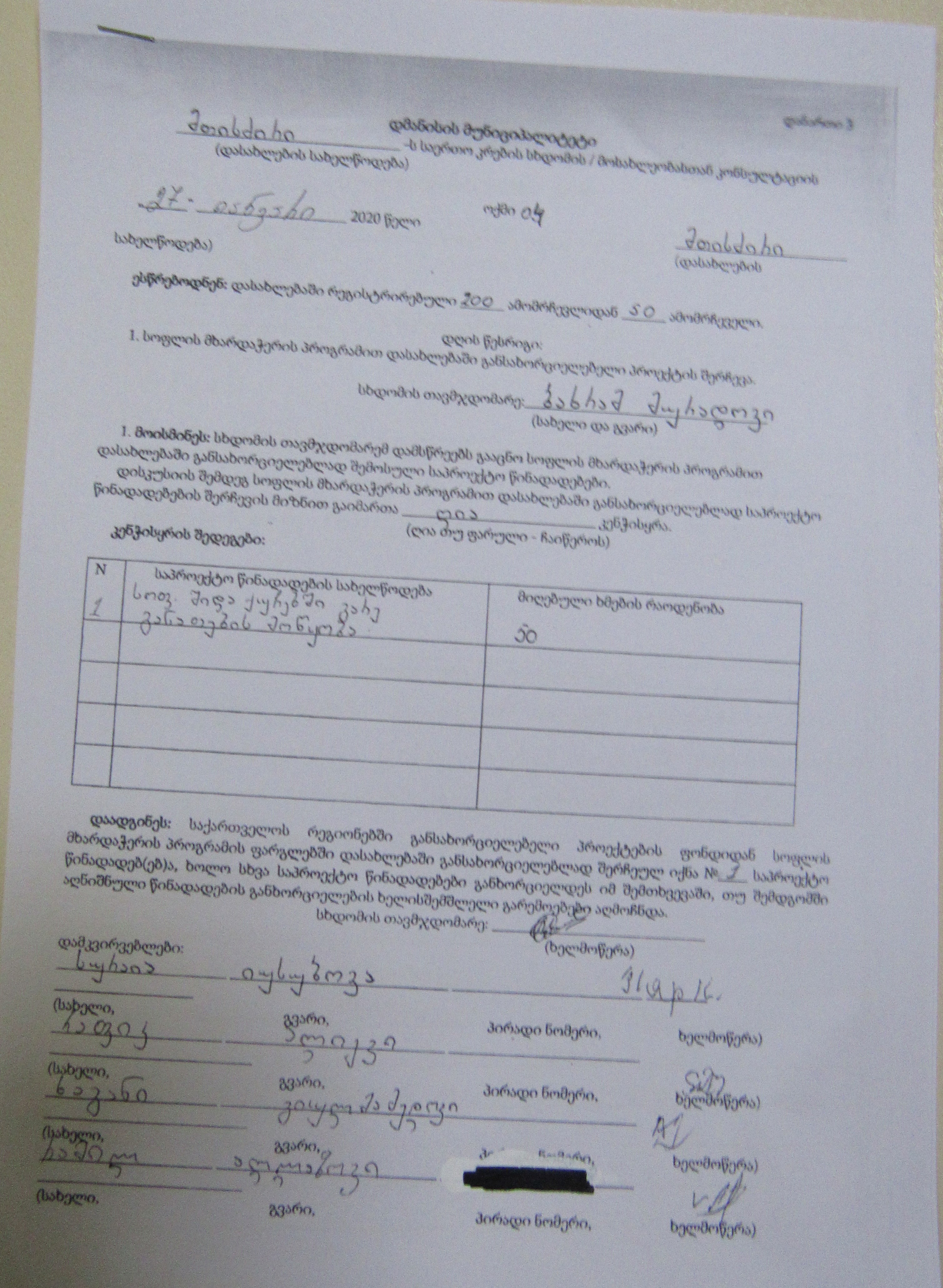 სოფლის მხარდაჭერის პროგრამა“ 2020