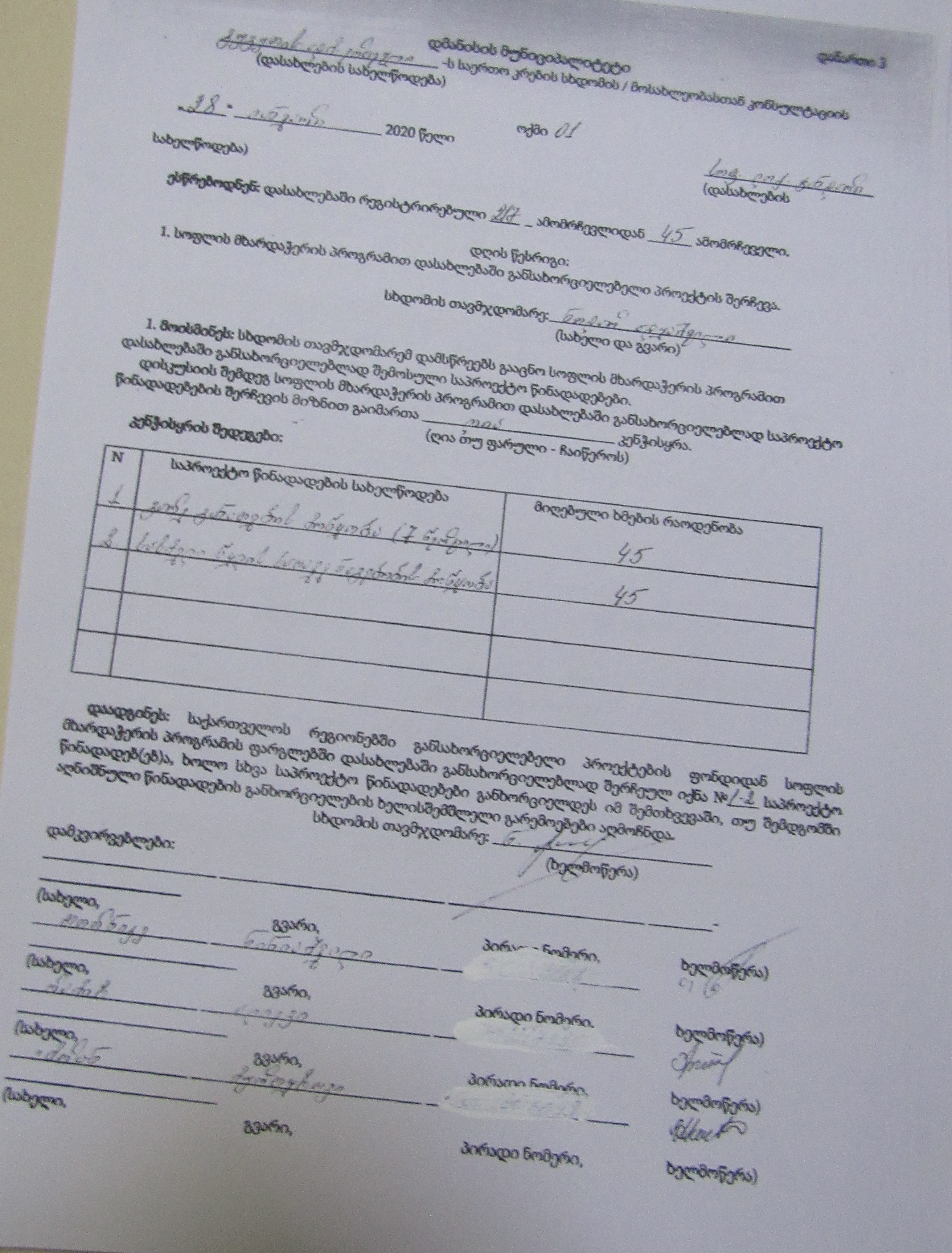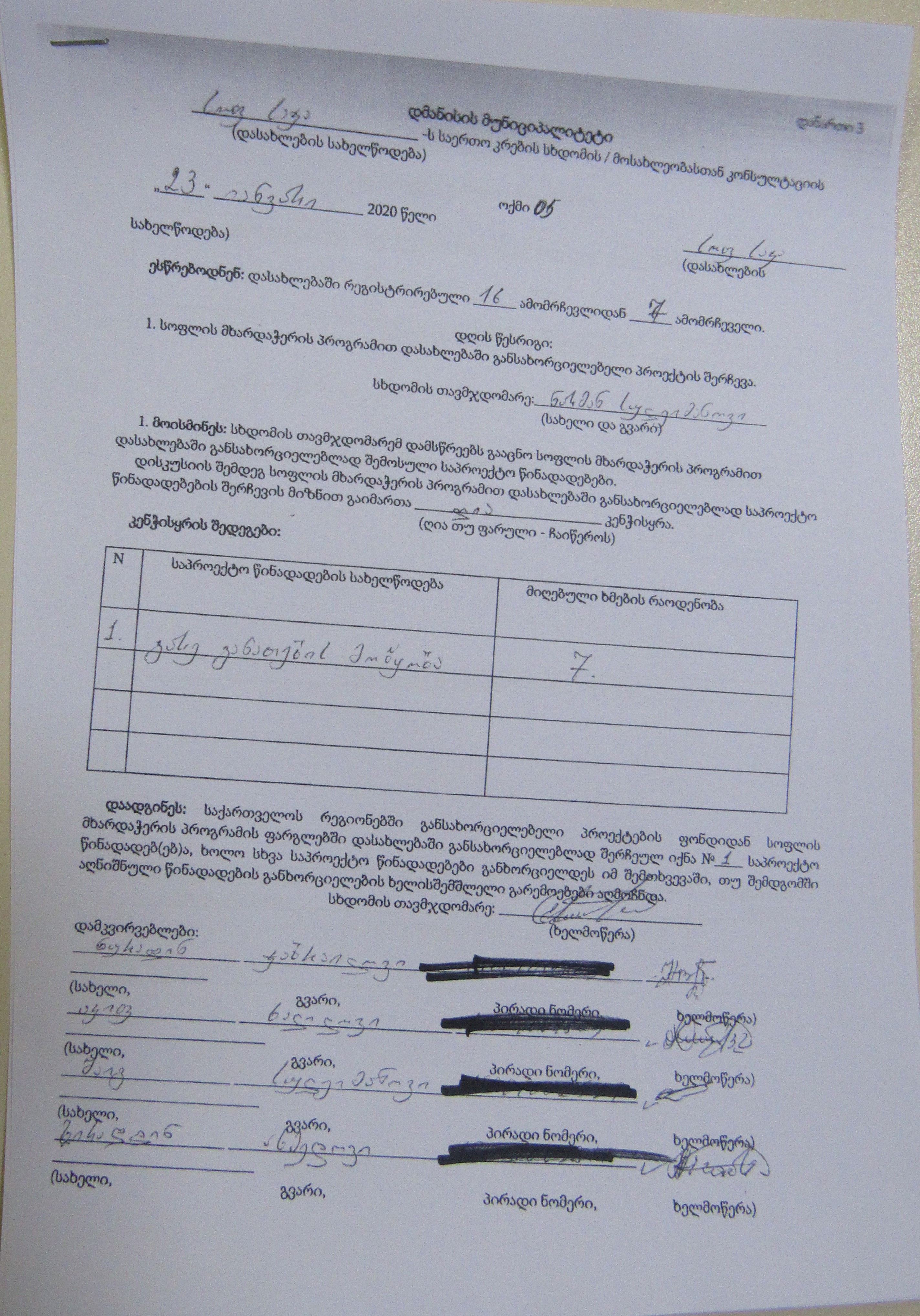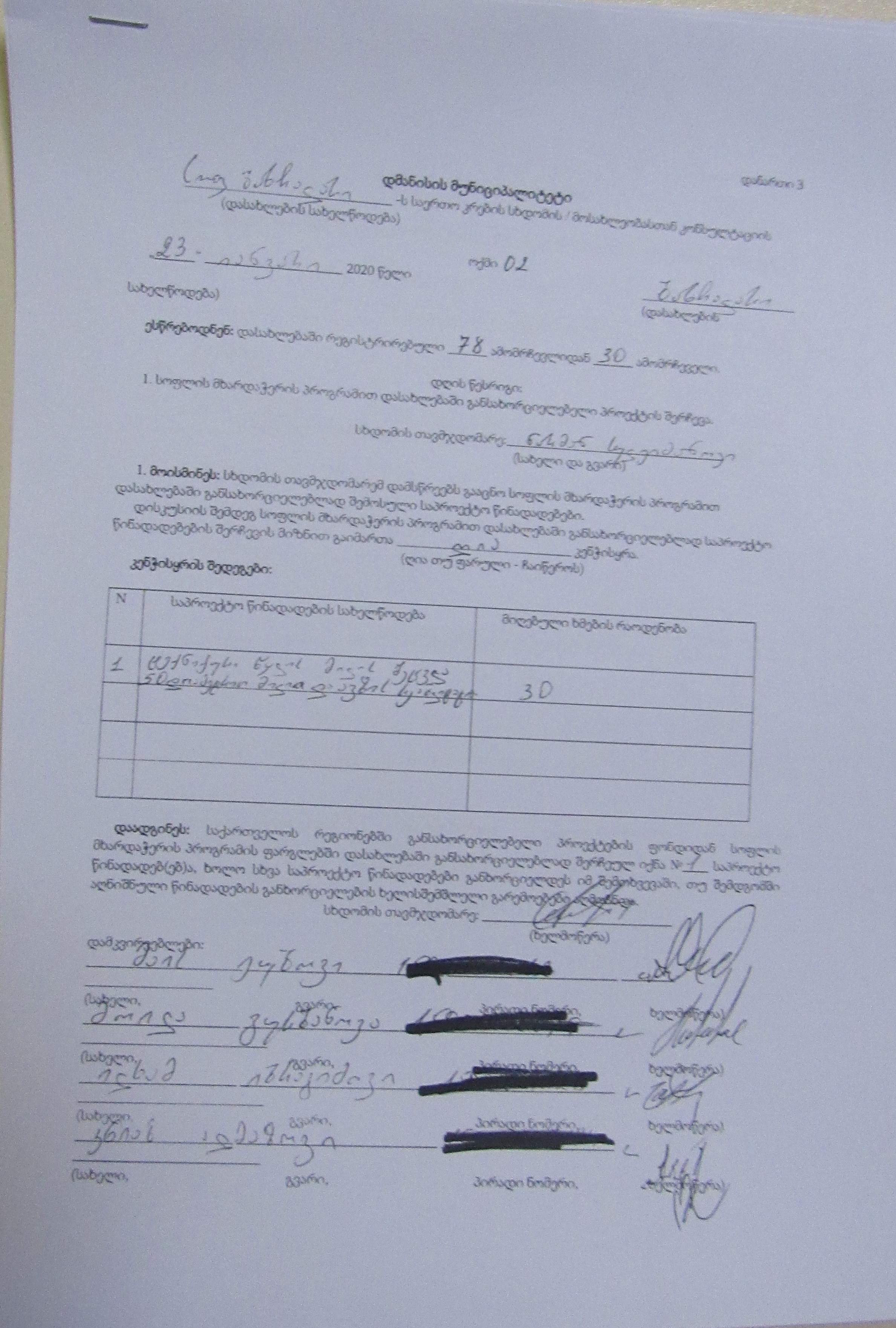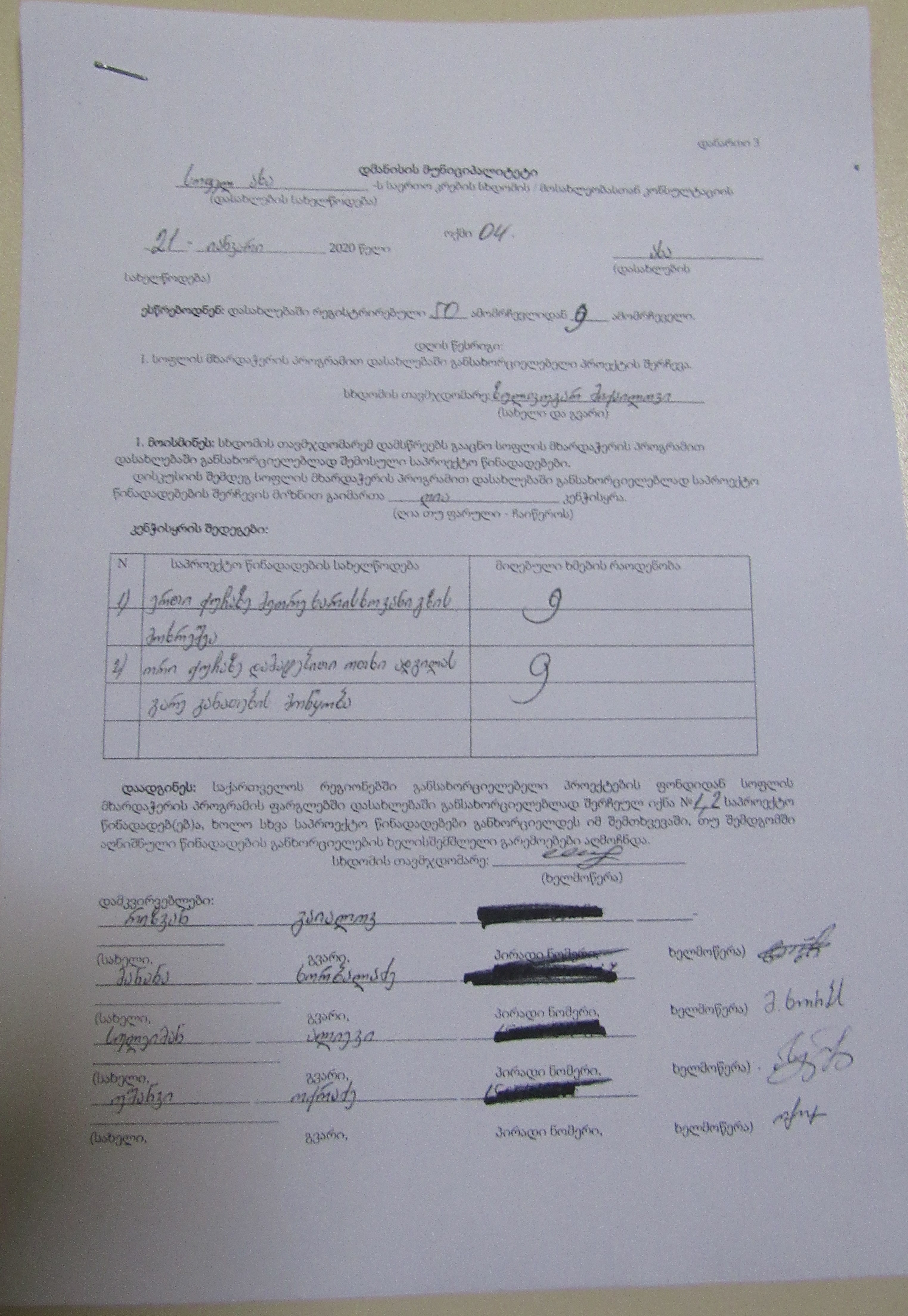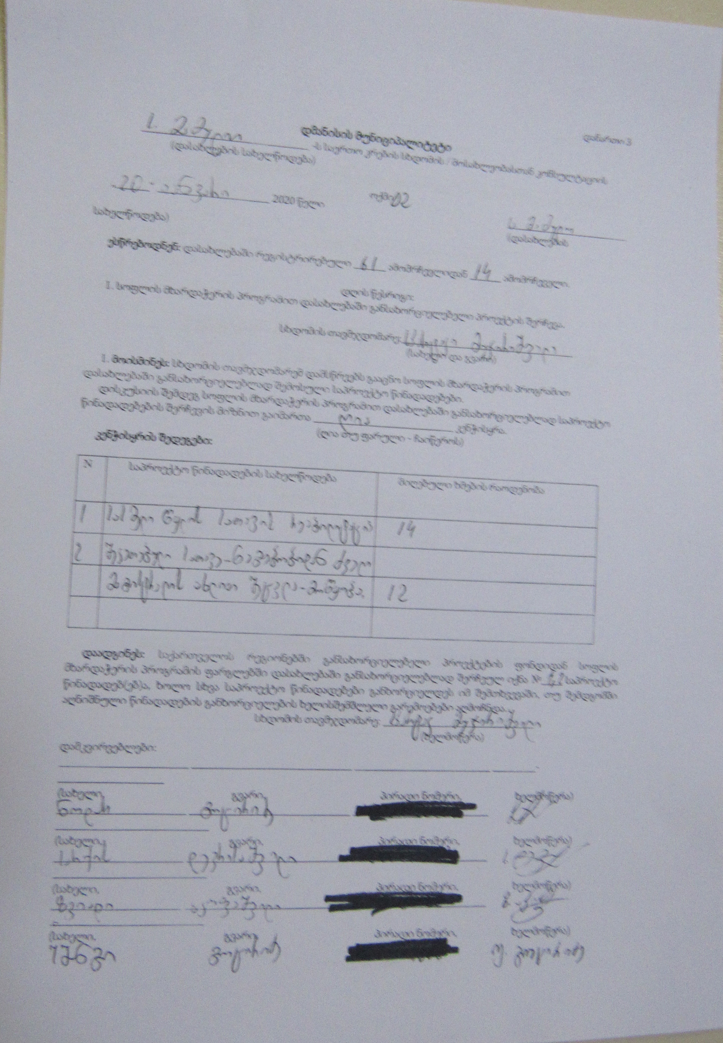 სოფლის მხარდაჭერის პროგრამა“ 2020