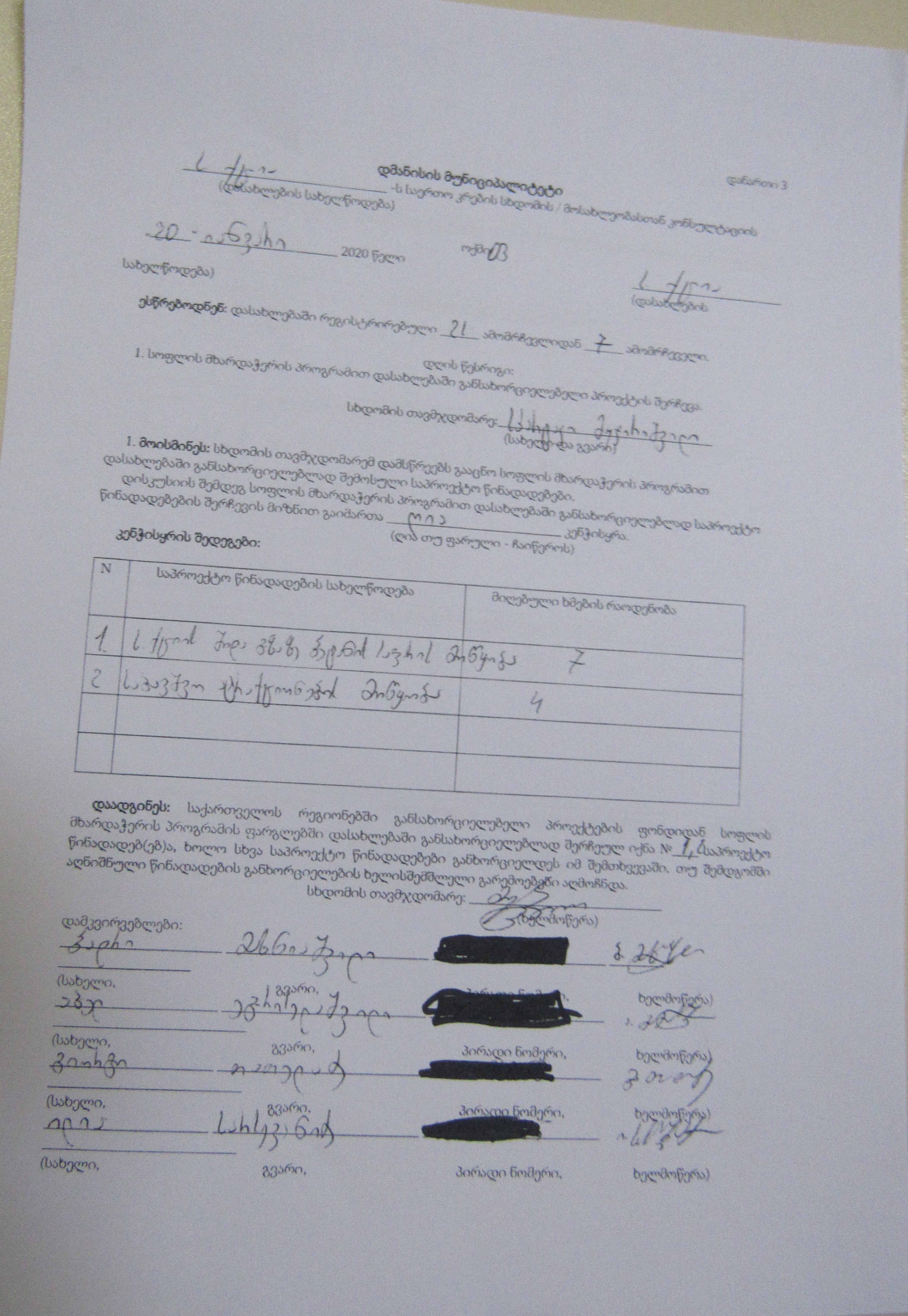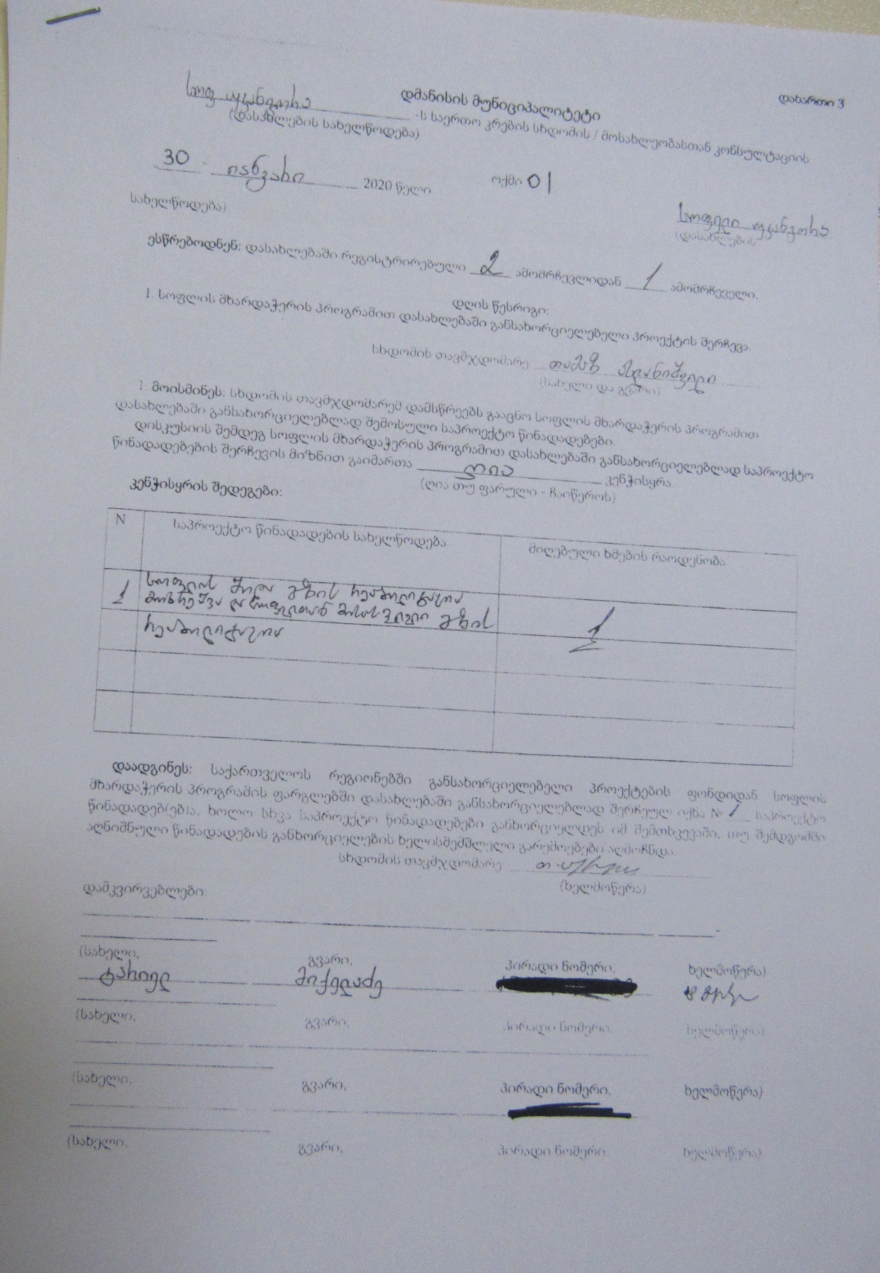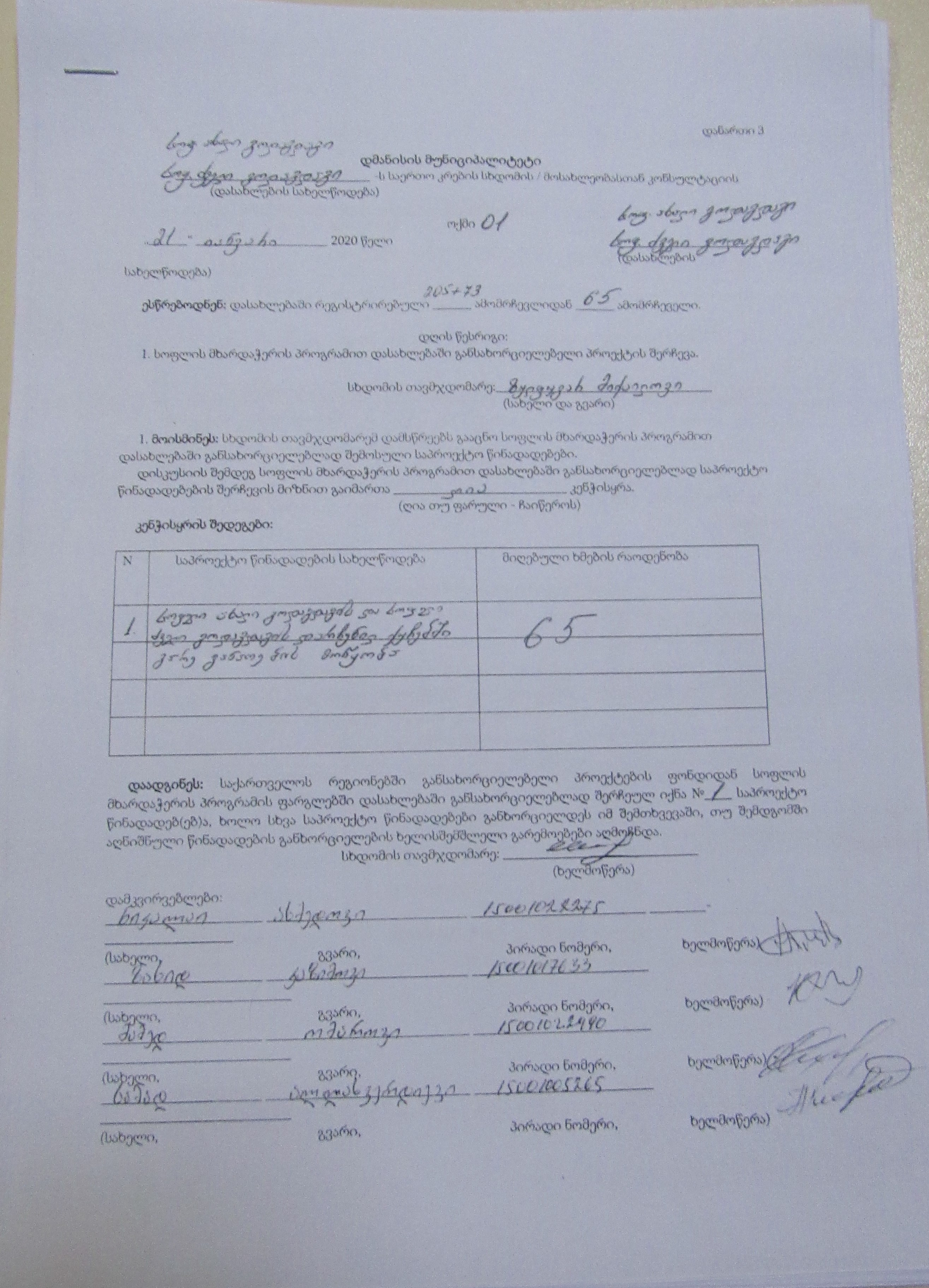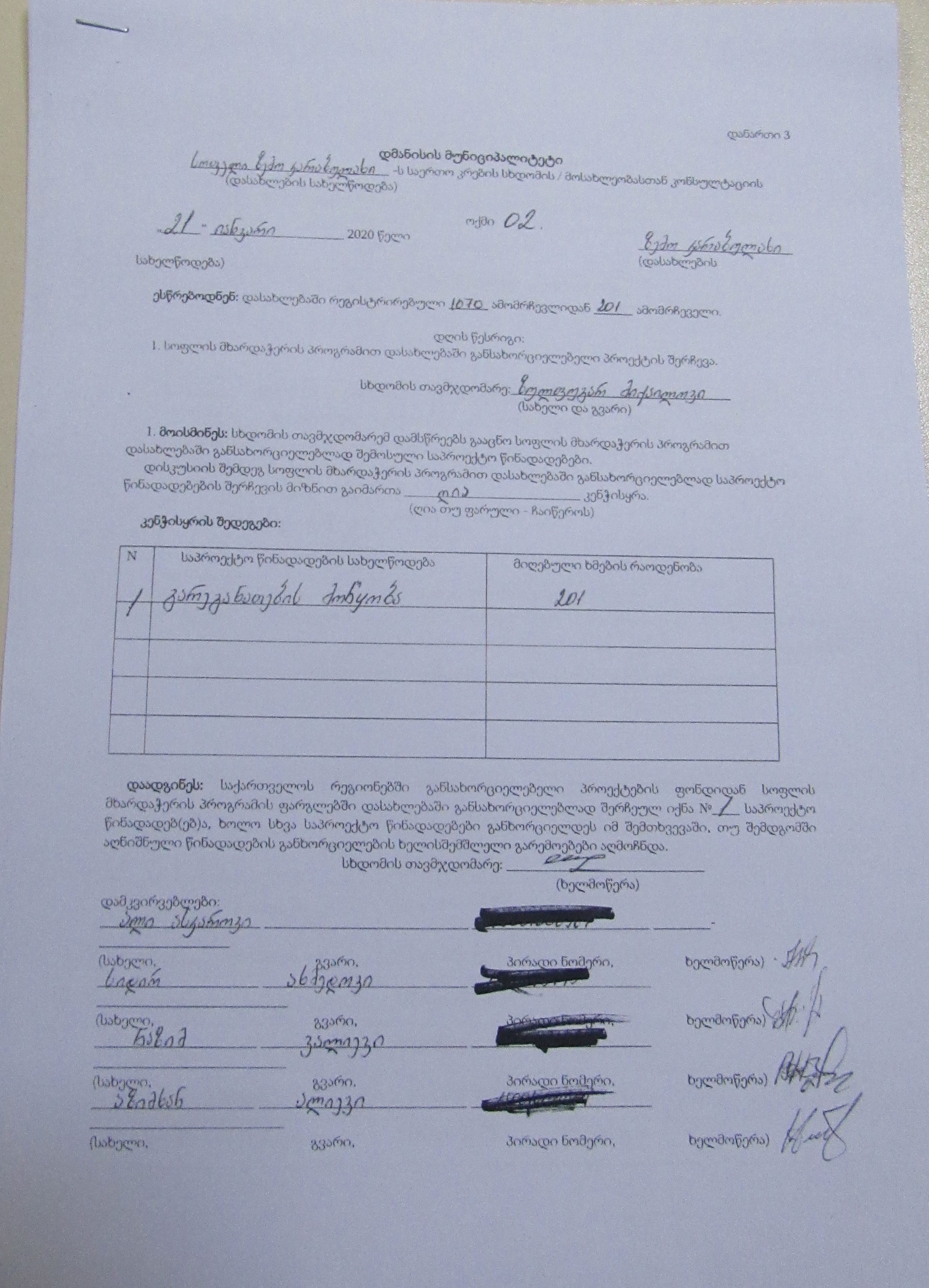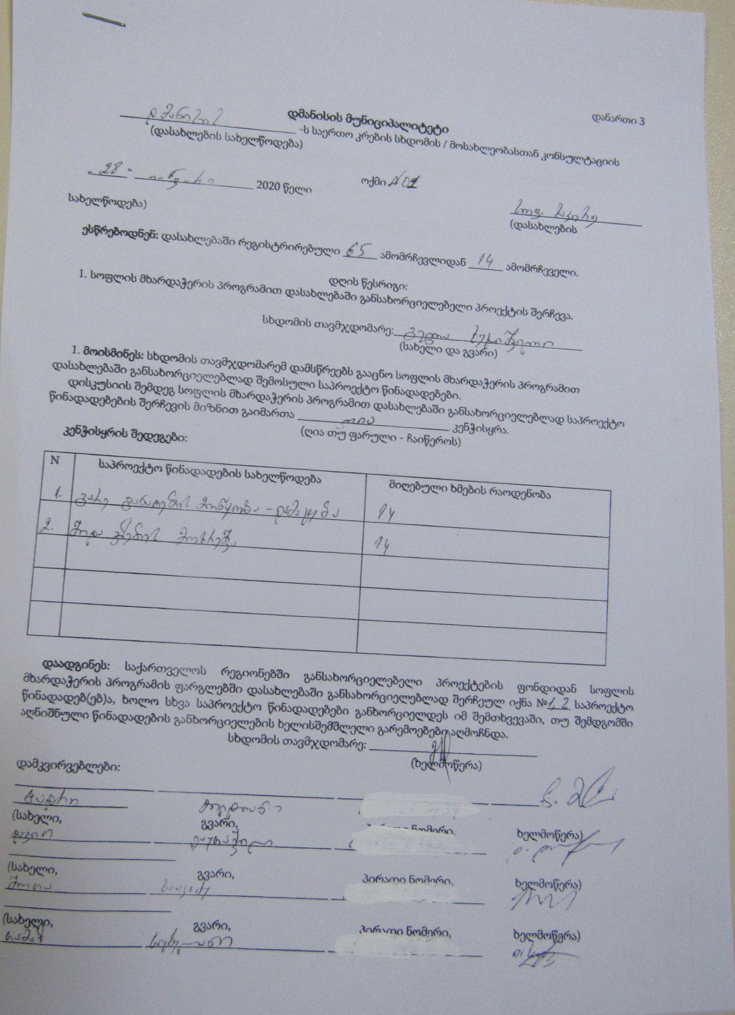 სოფლის მხარდაჭერის პროგრამა“ 2020