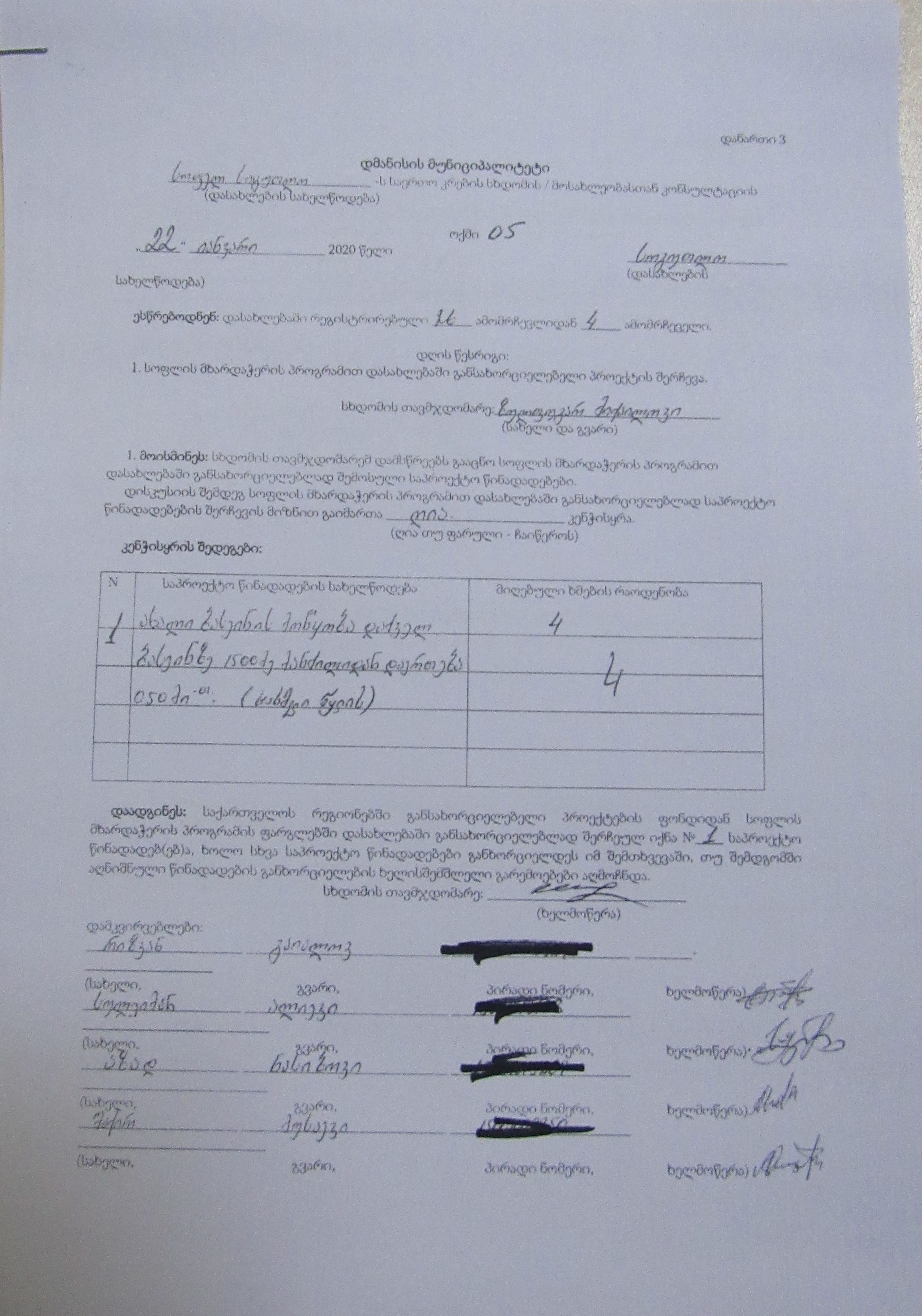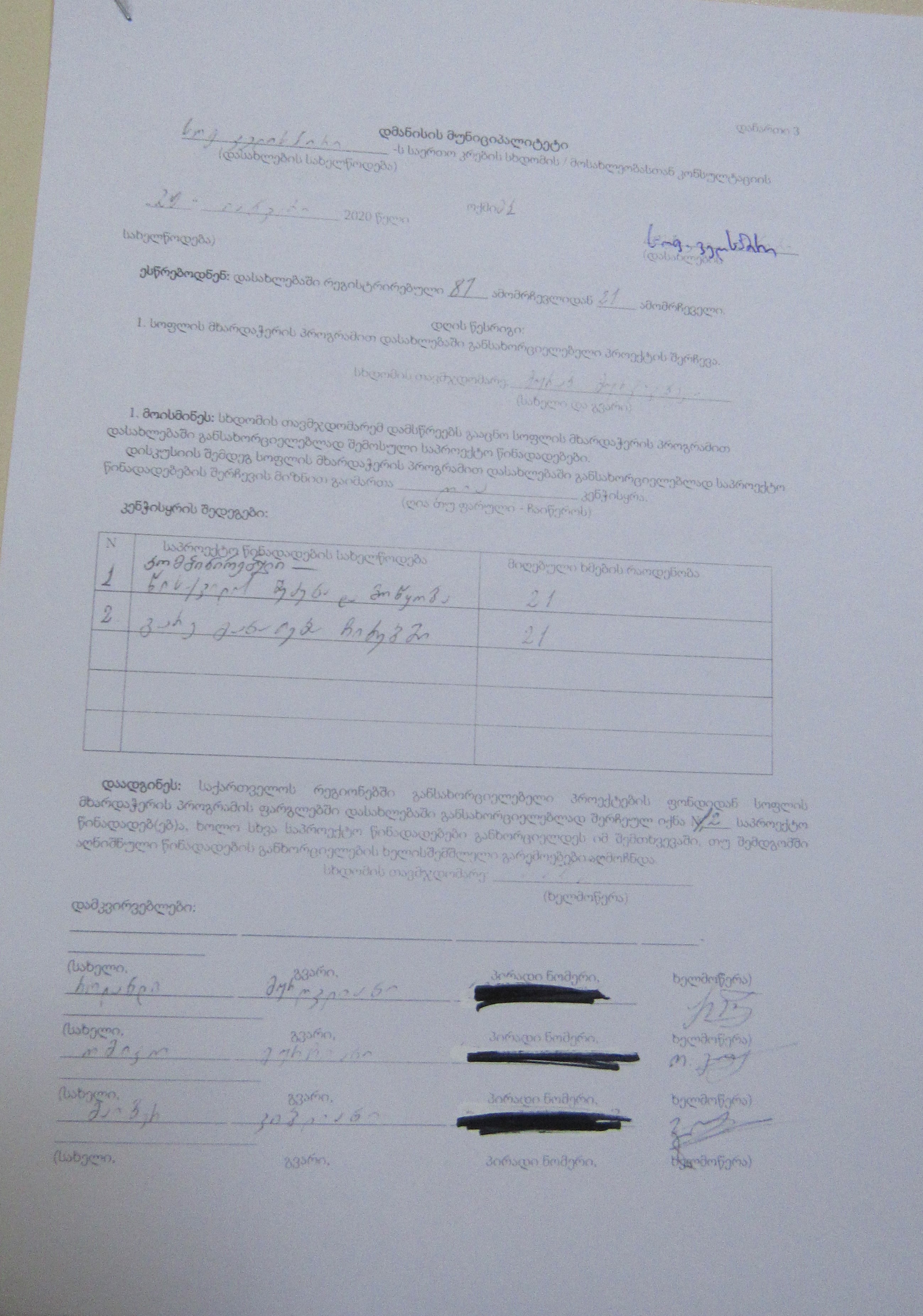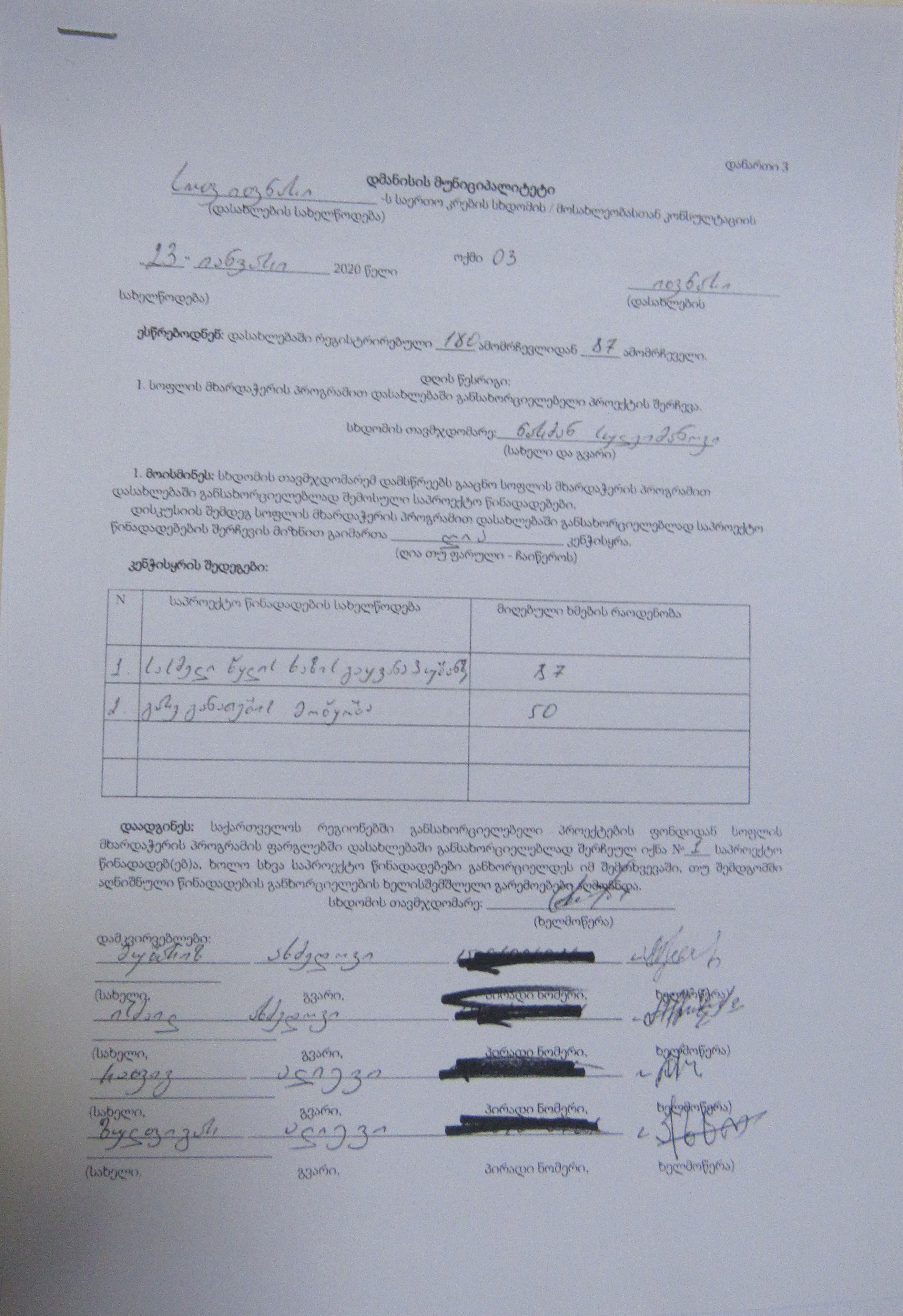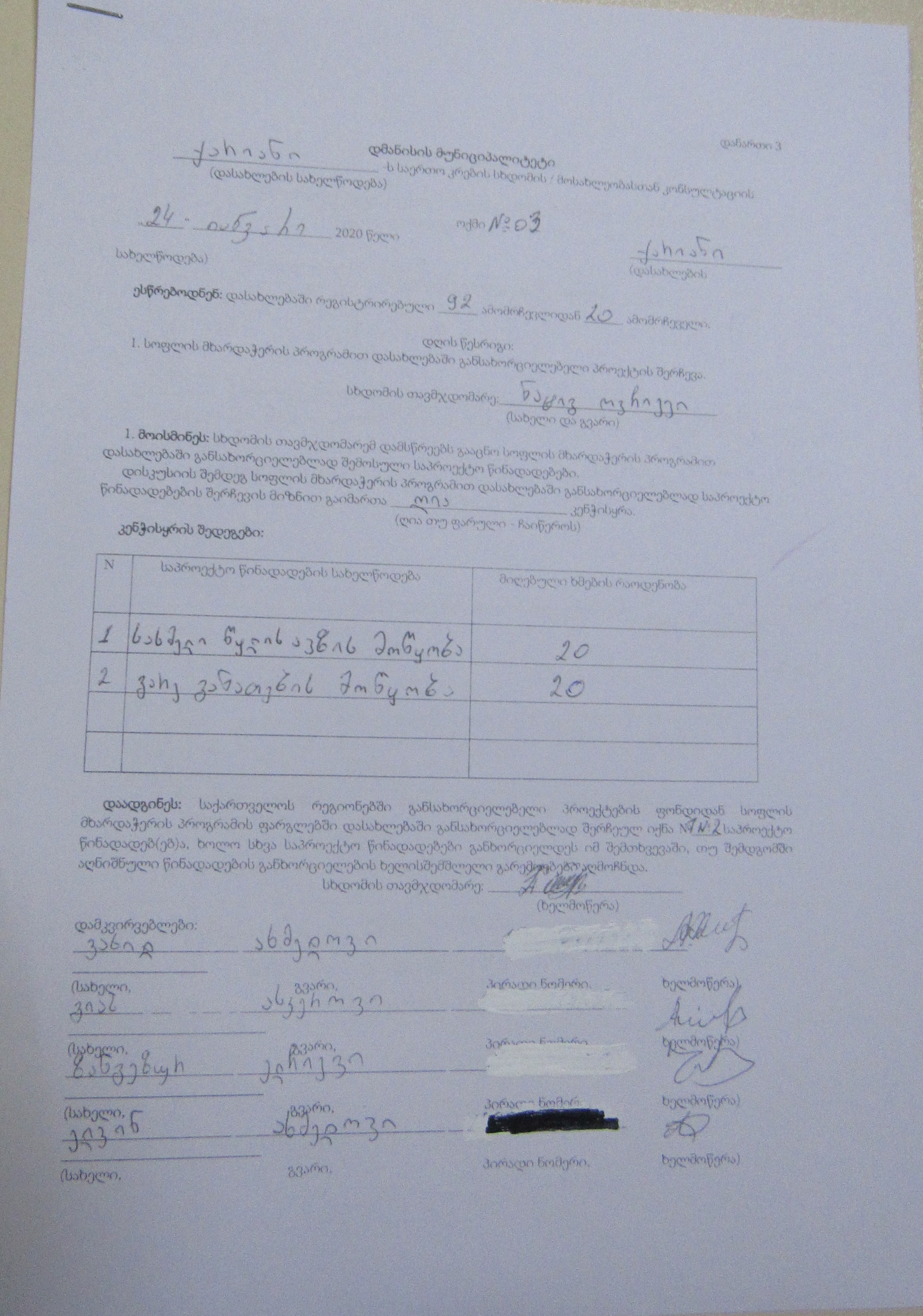 სოფლის მხარდაჭერის პროგრამა“ 2020