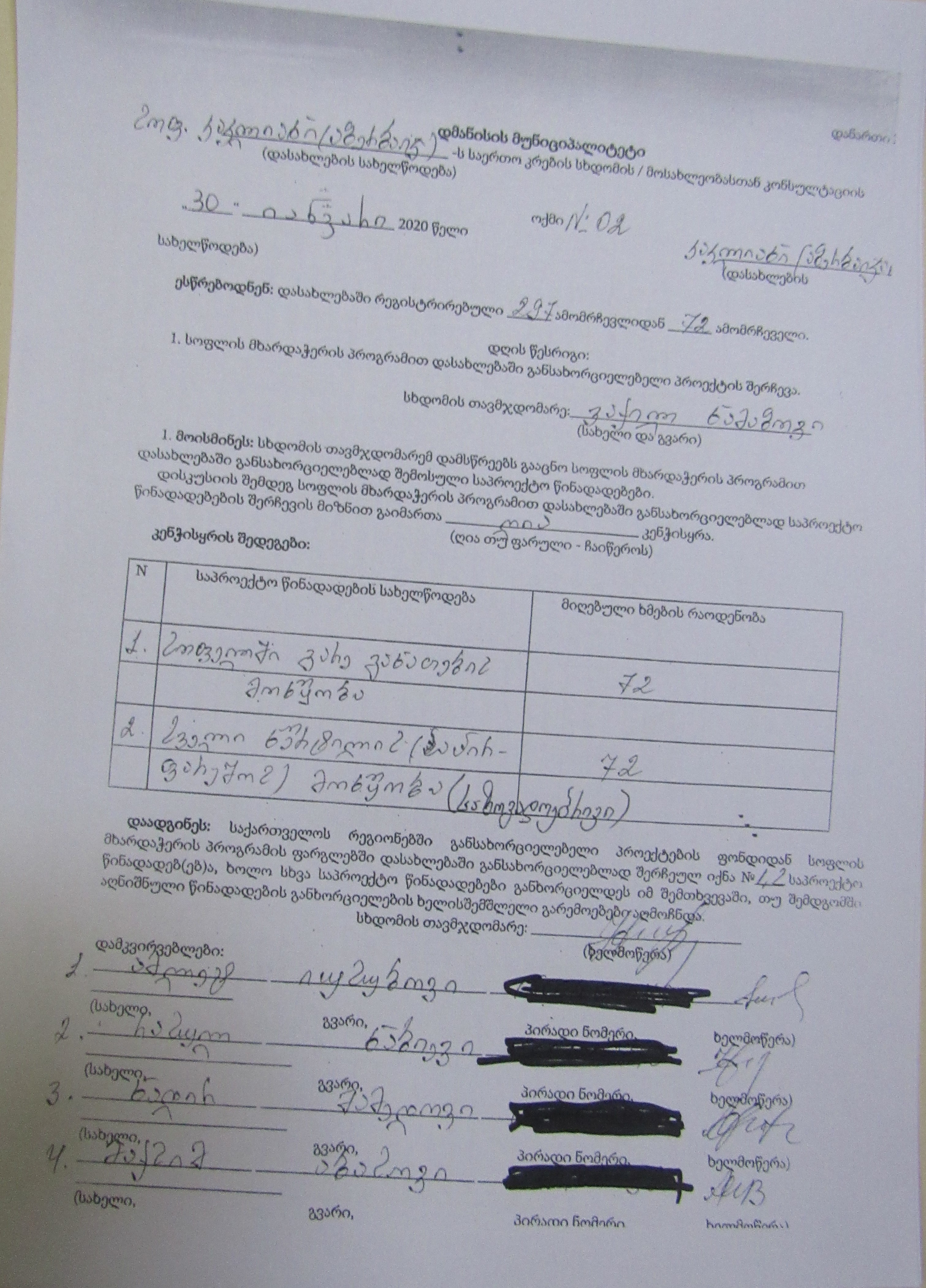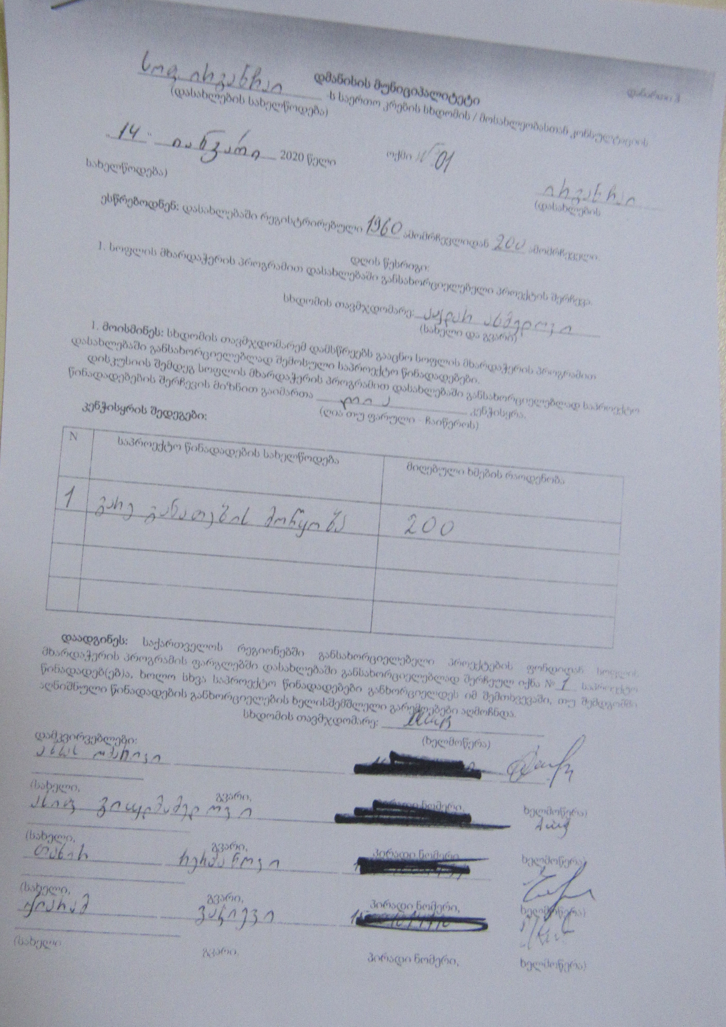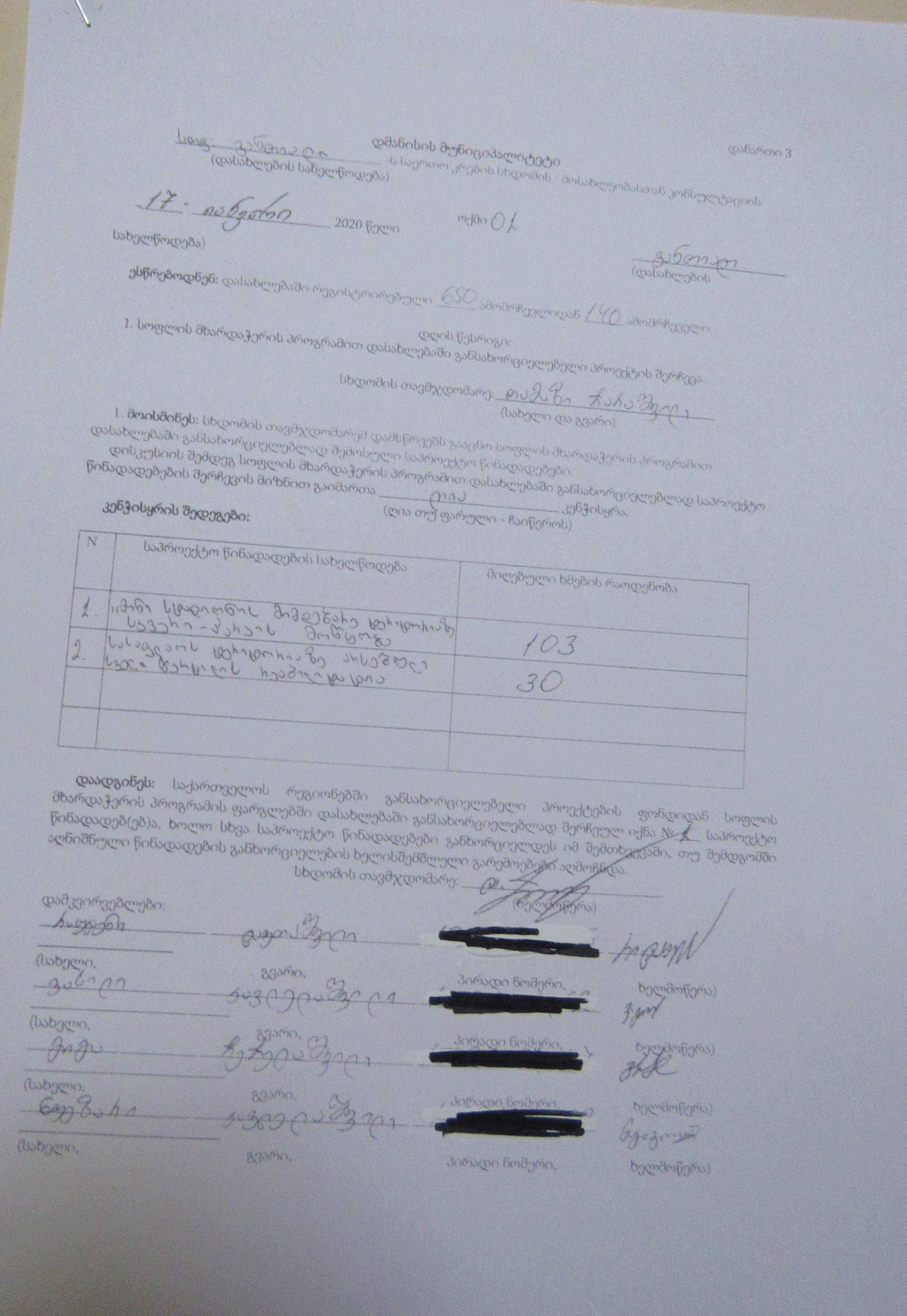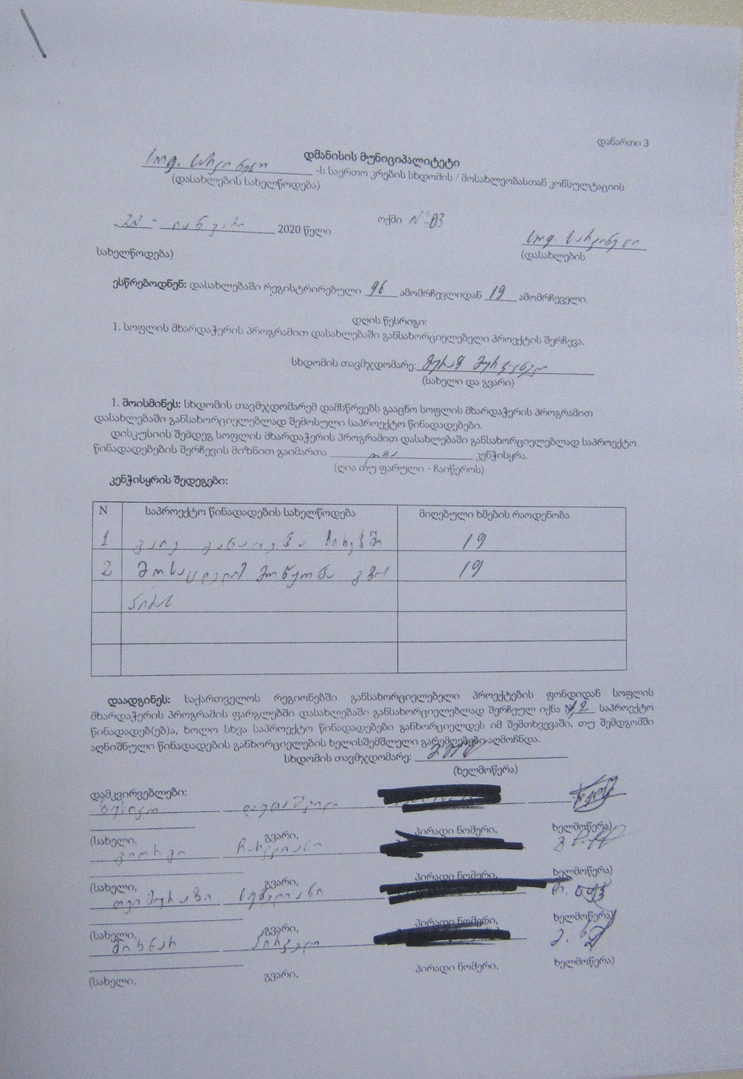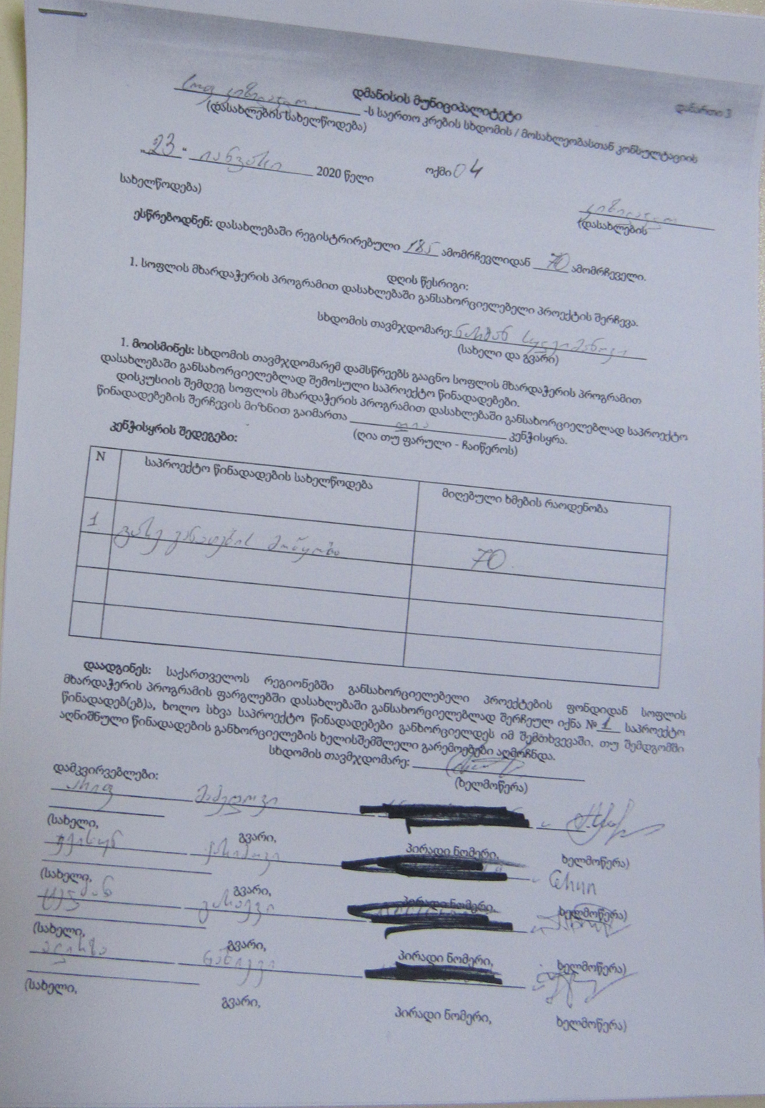 სოფლის მხარდაჭერის პროგრამა“ 2020