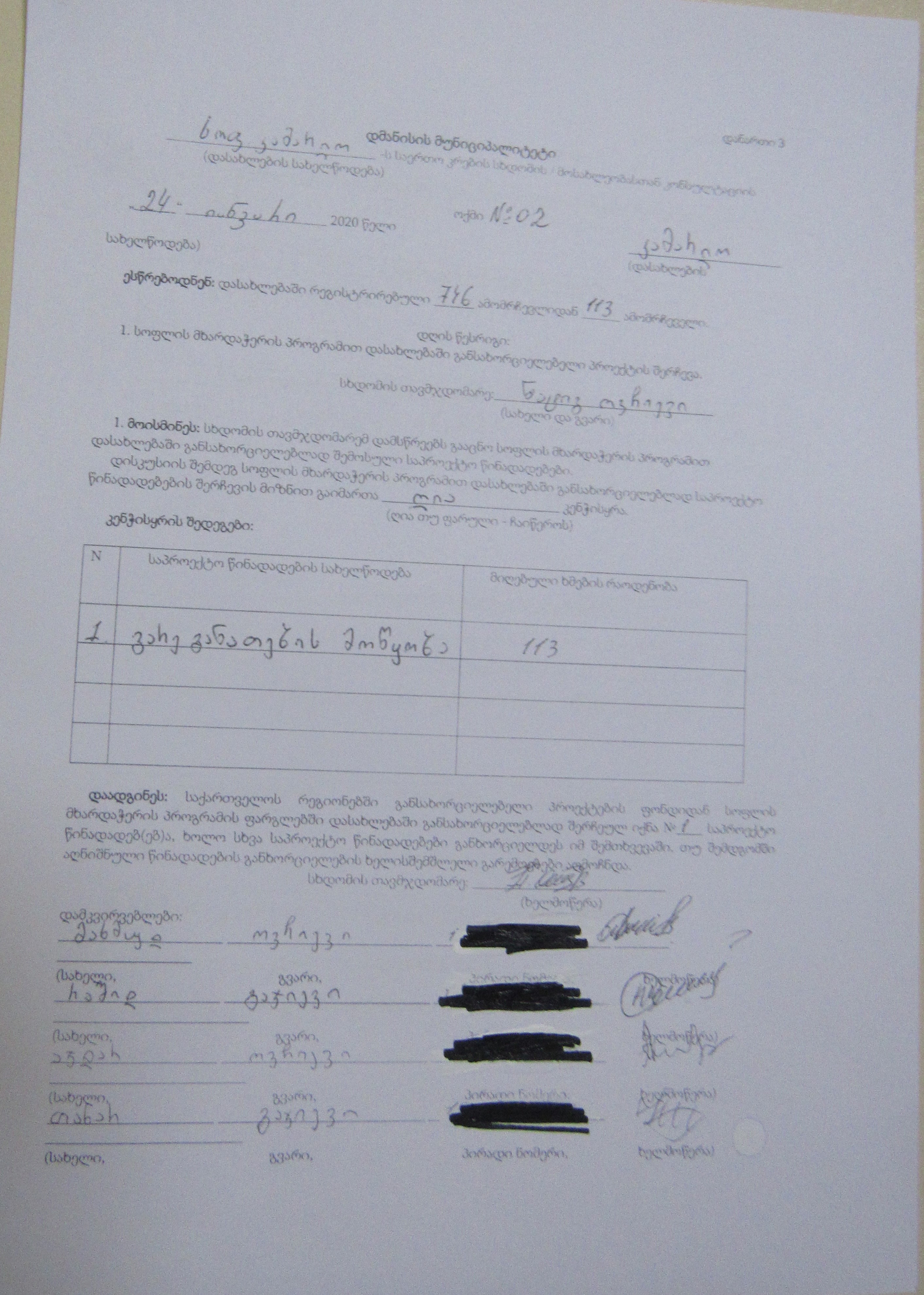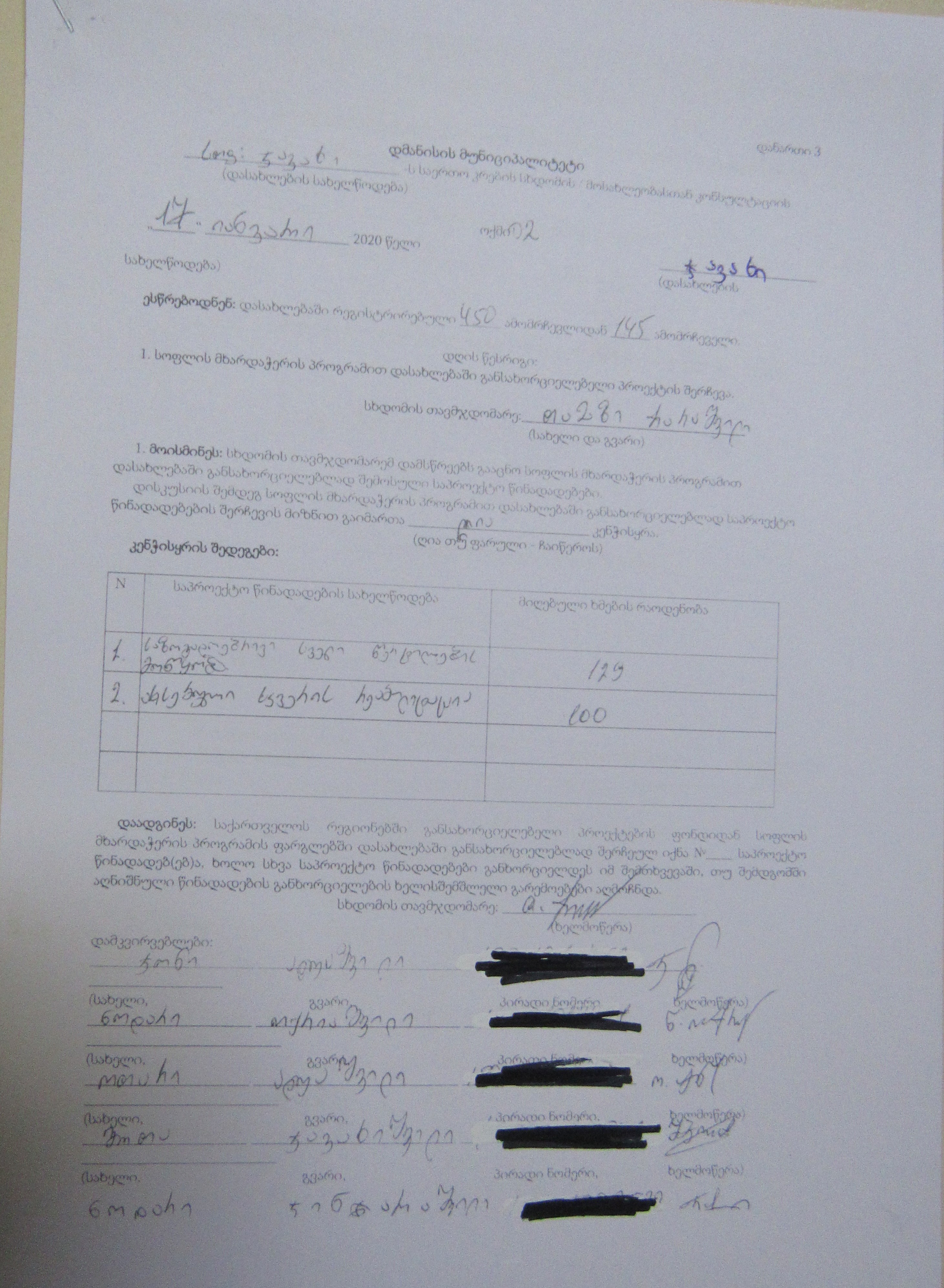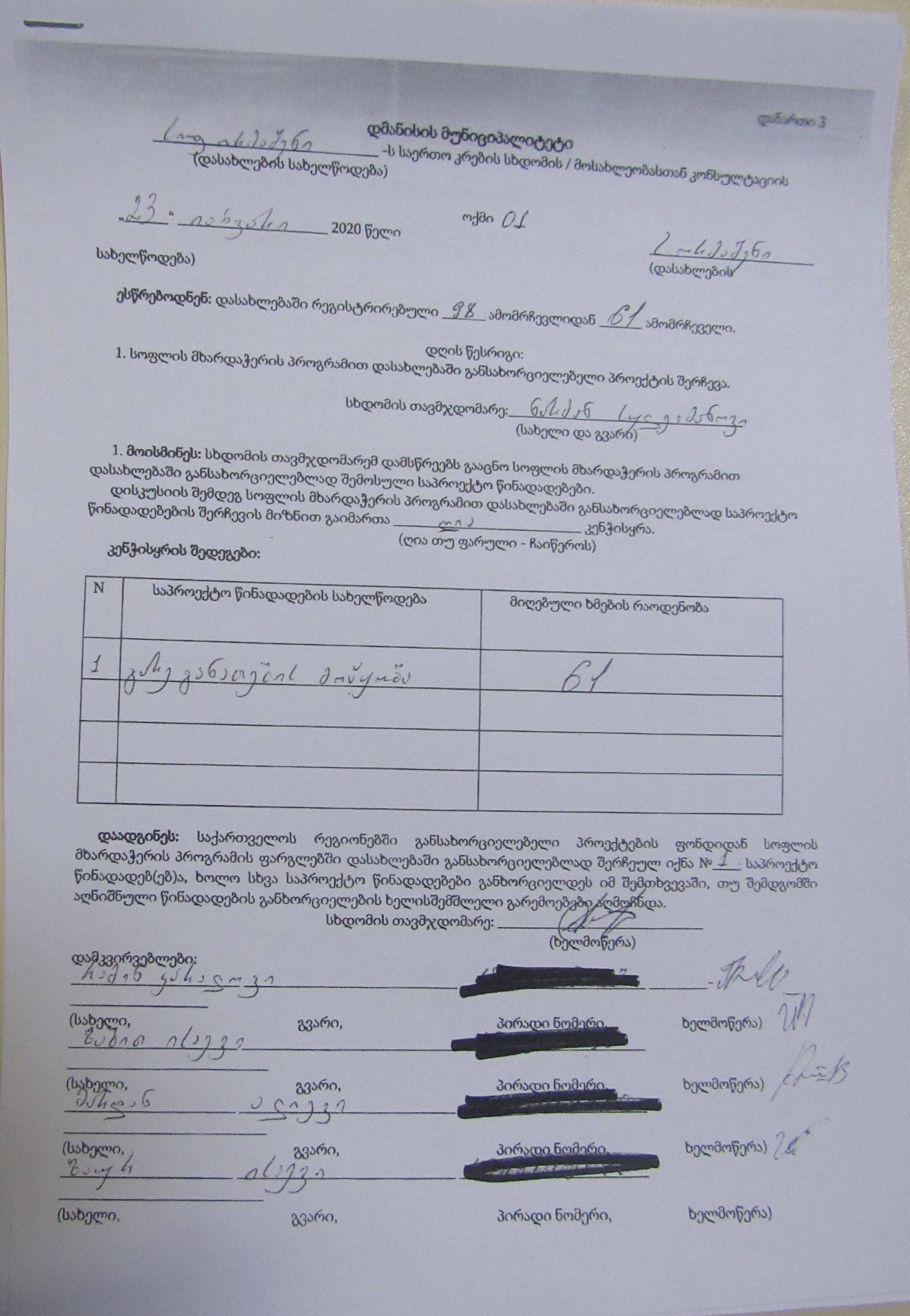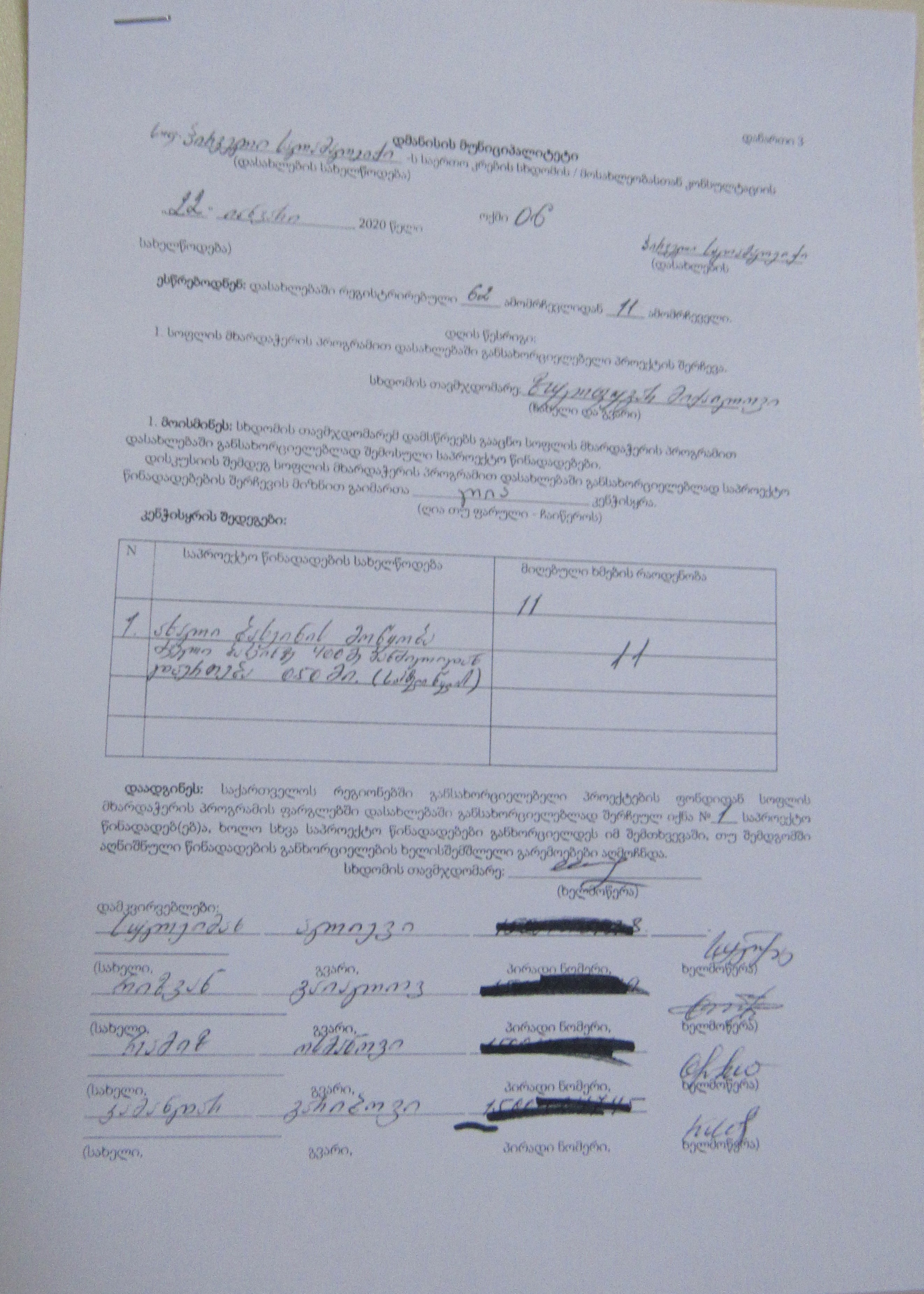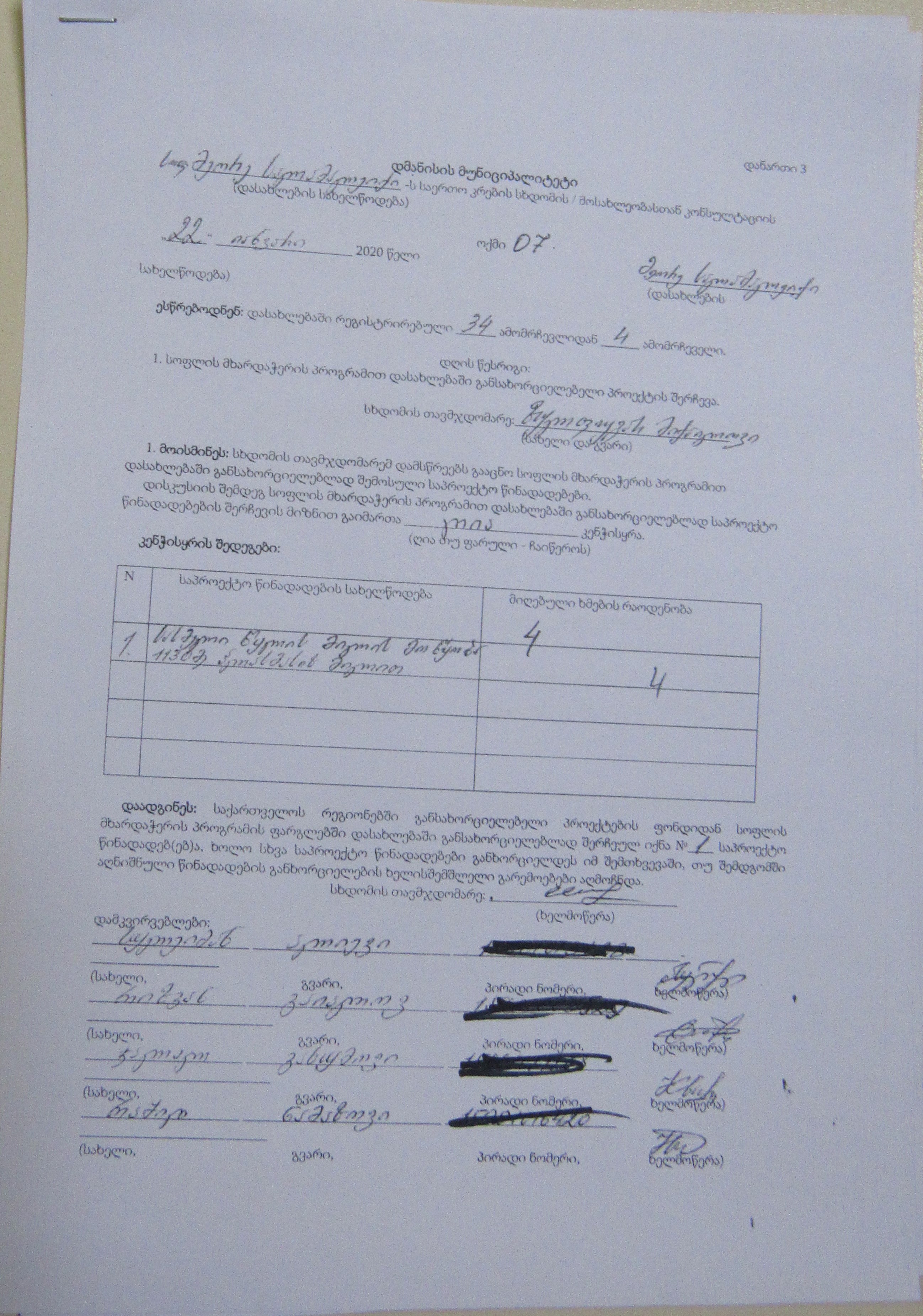 სოფლის მხარდაჭერის პროგრამა“ 2020