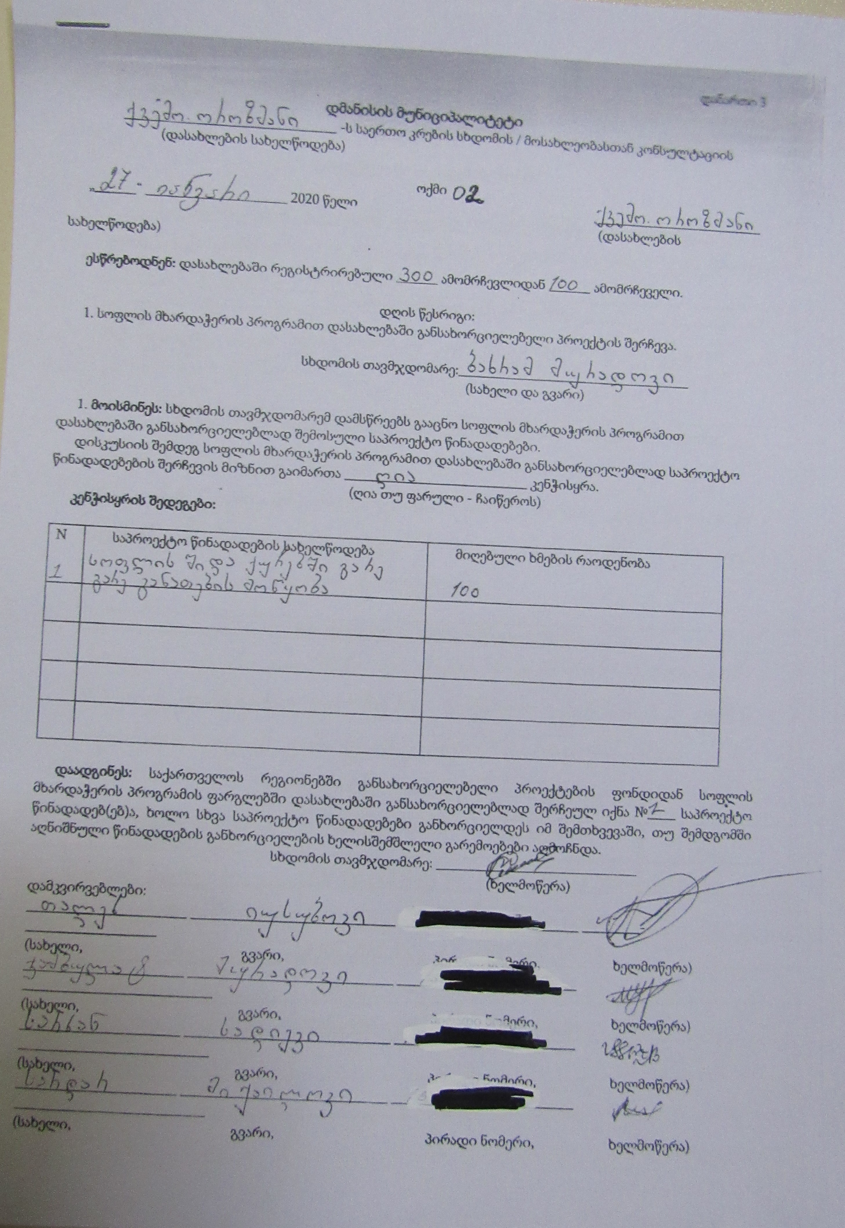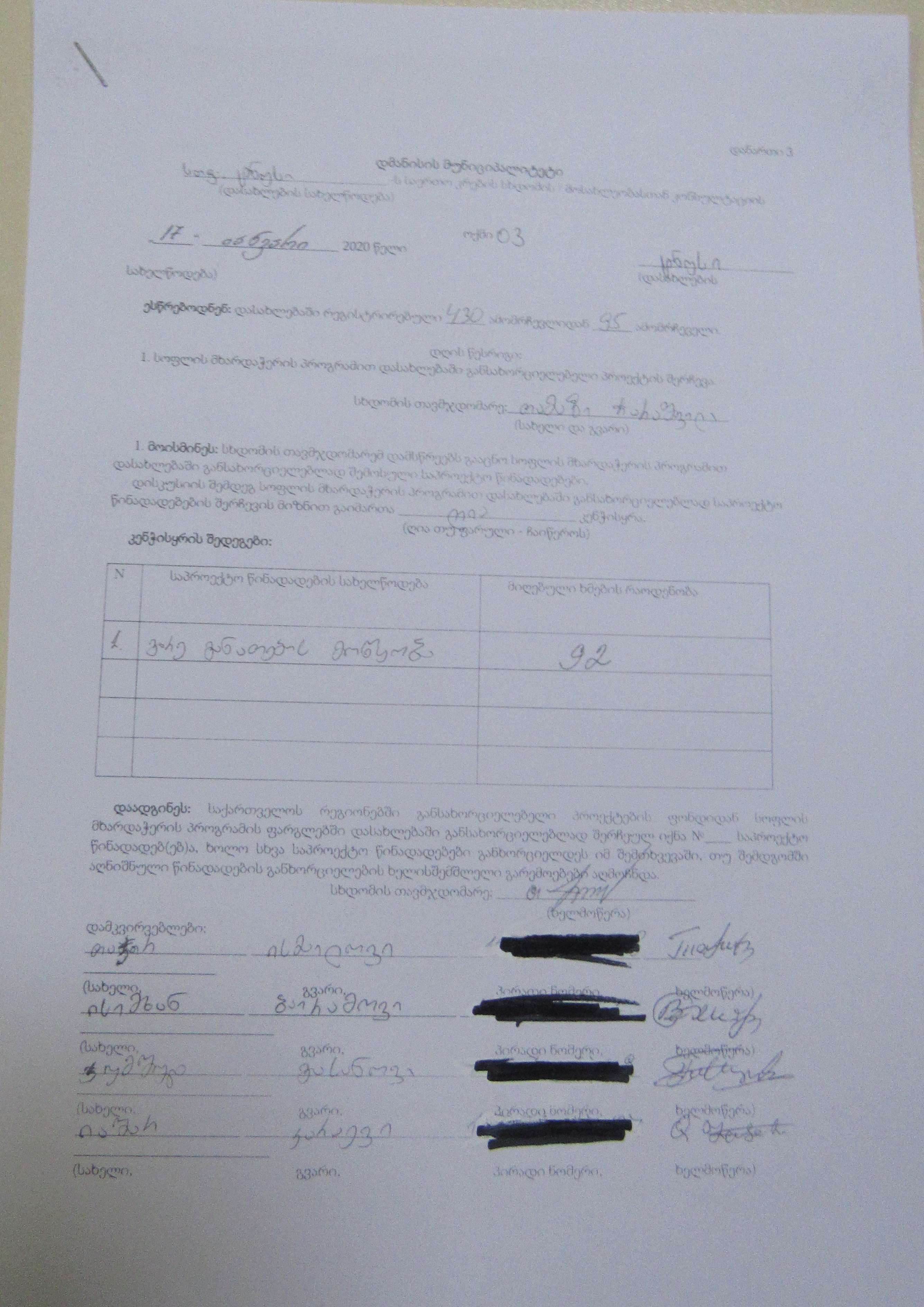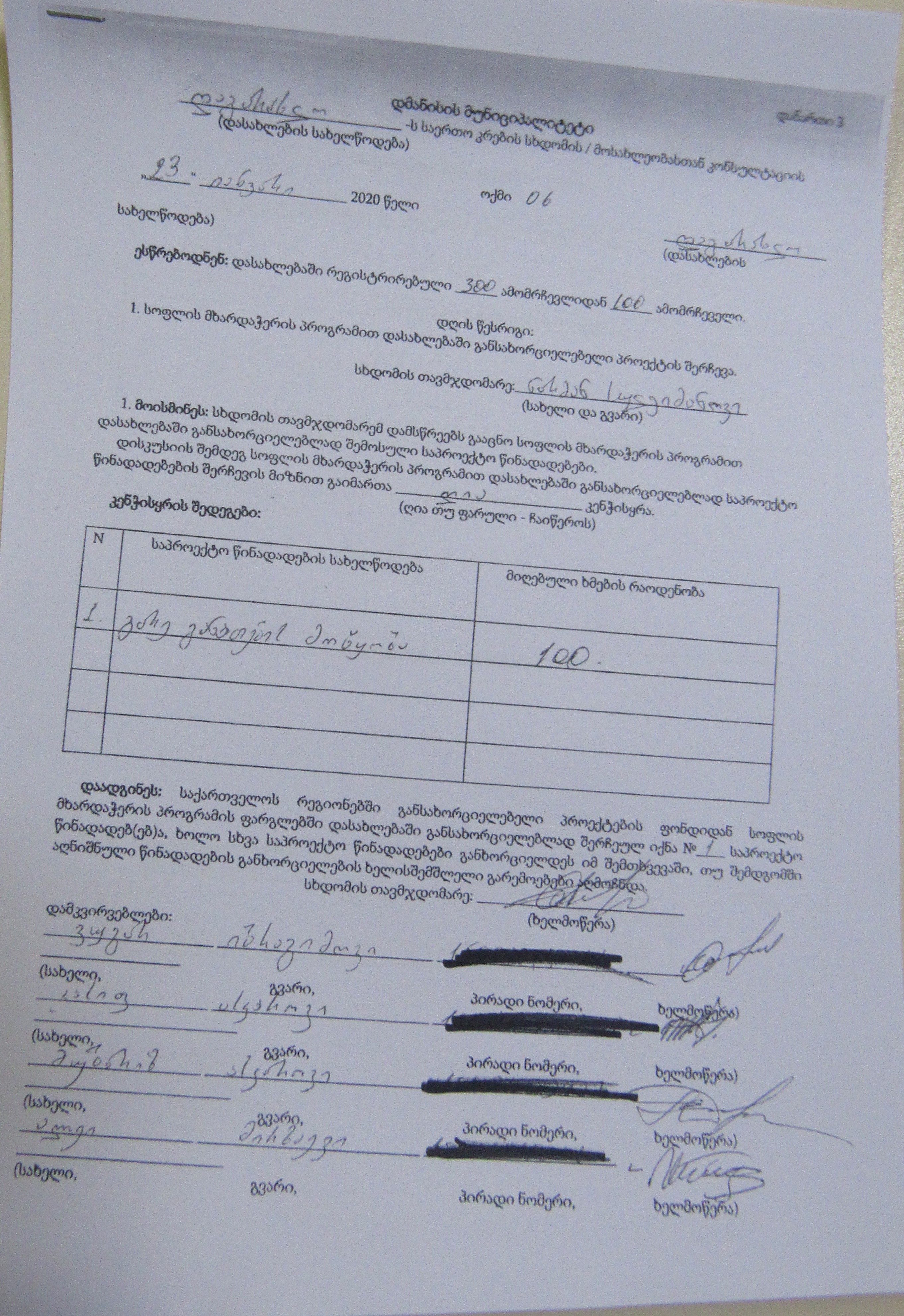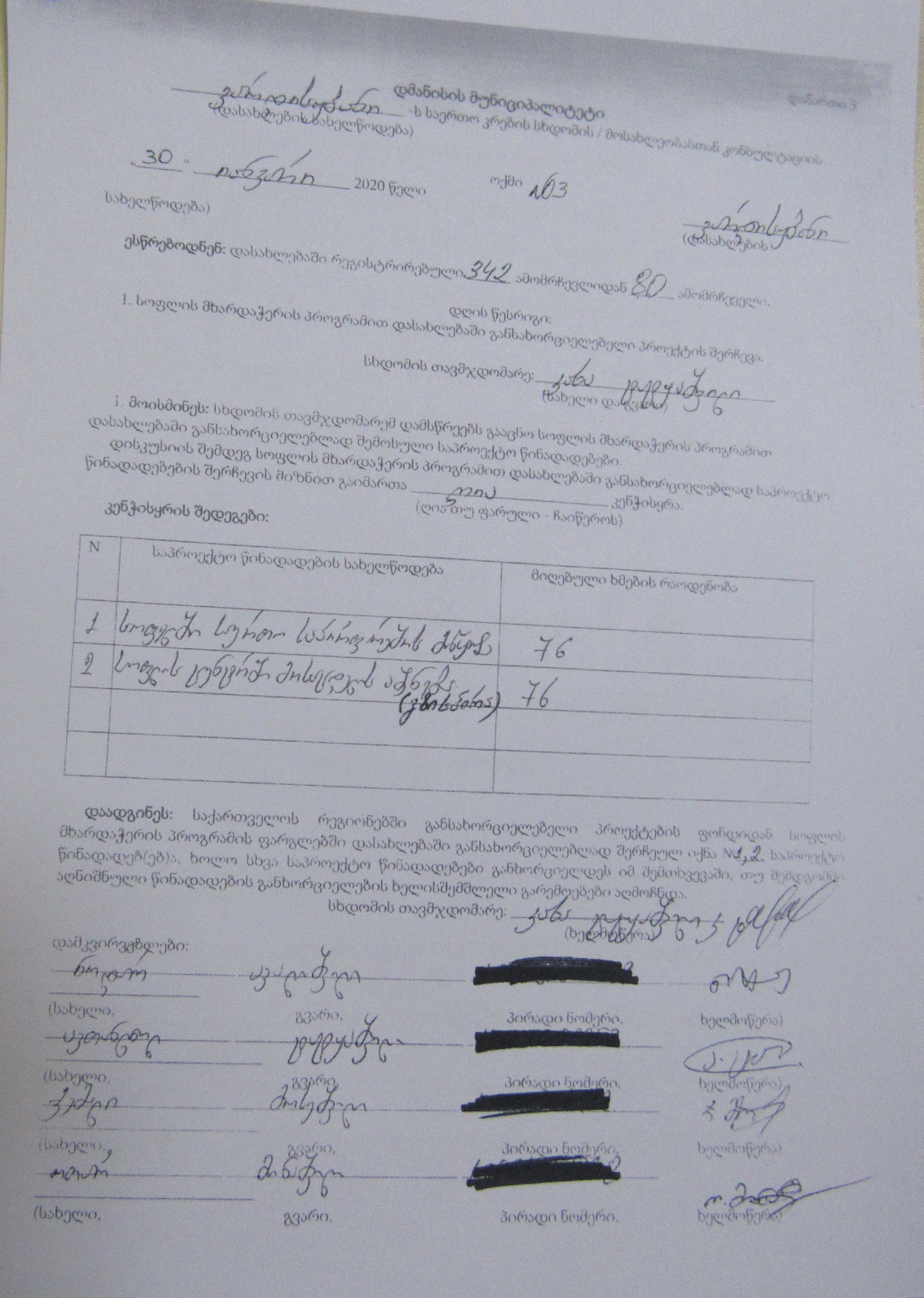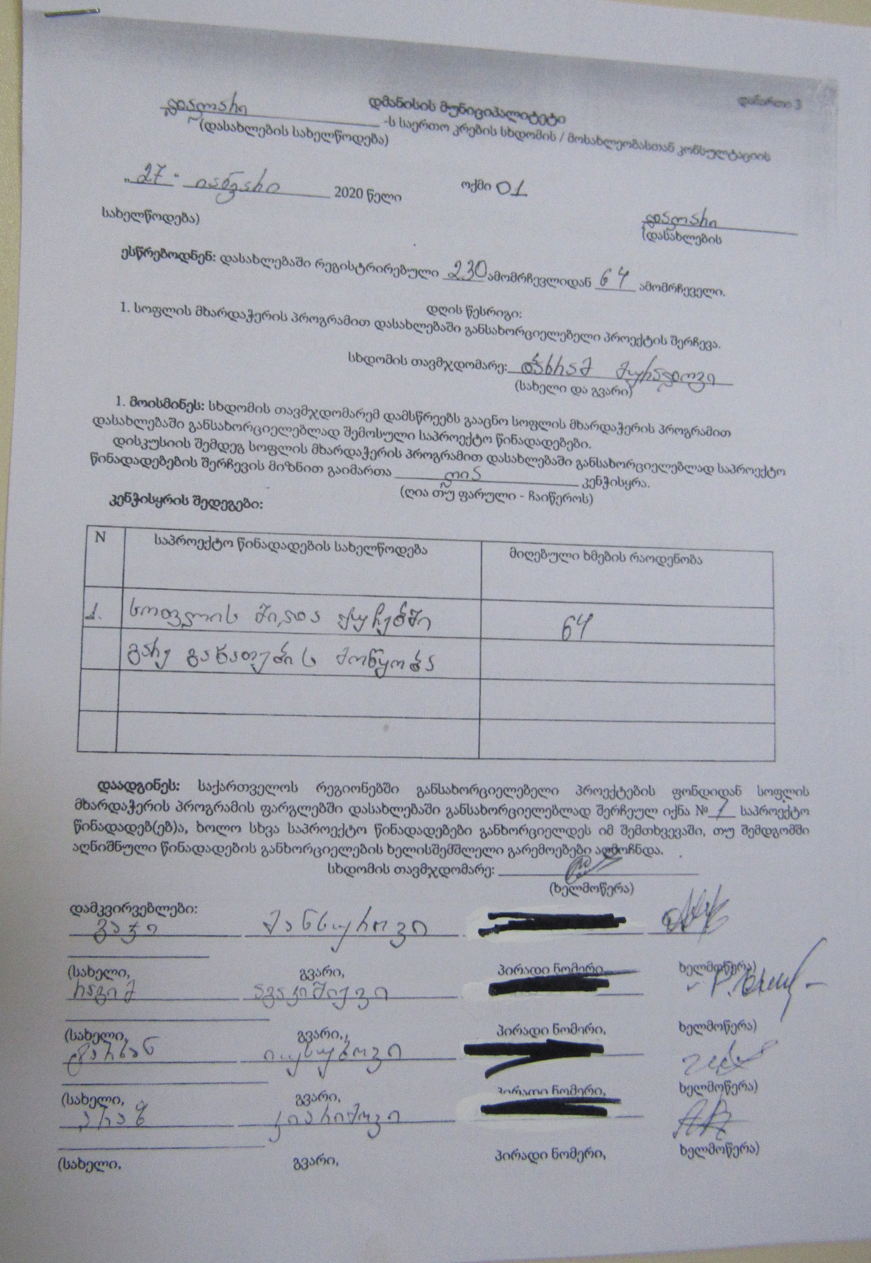 სოფლის მხარდაჭერის პროგრამა“ 2020