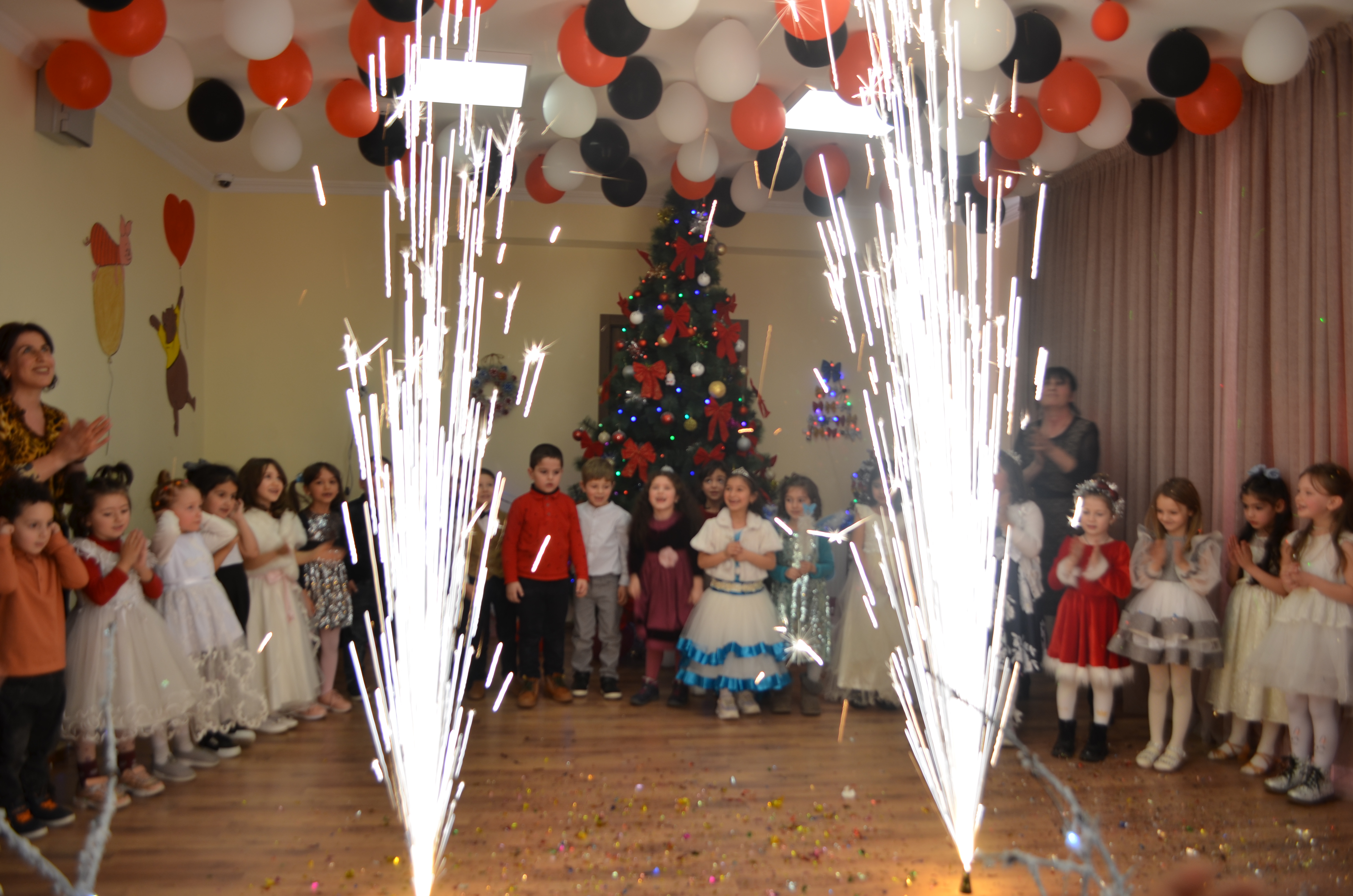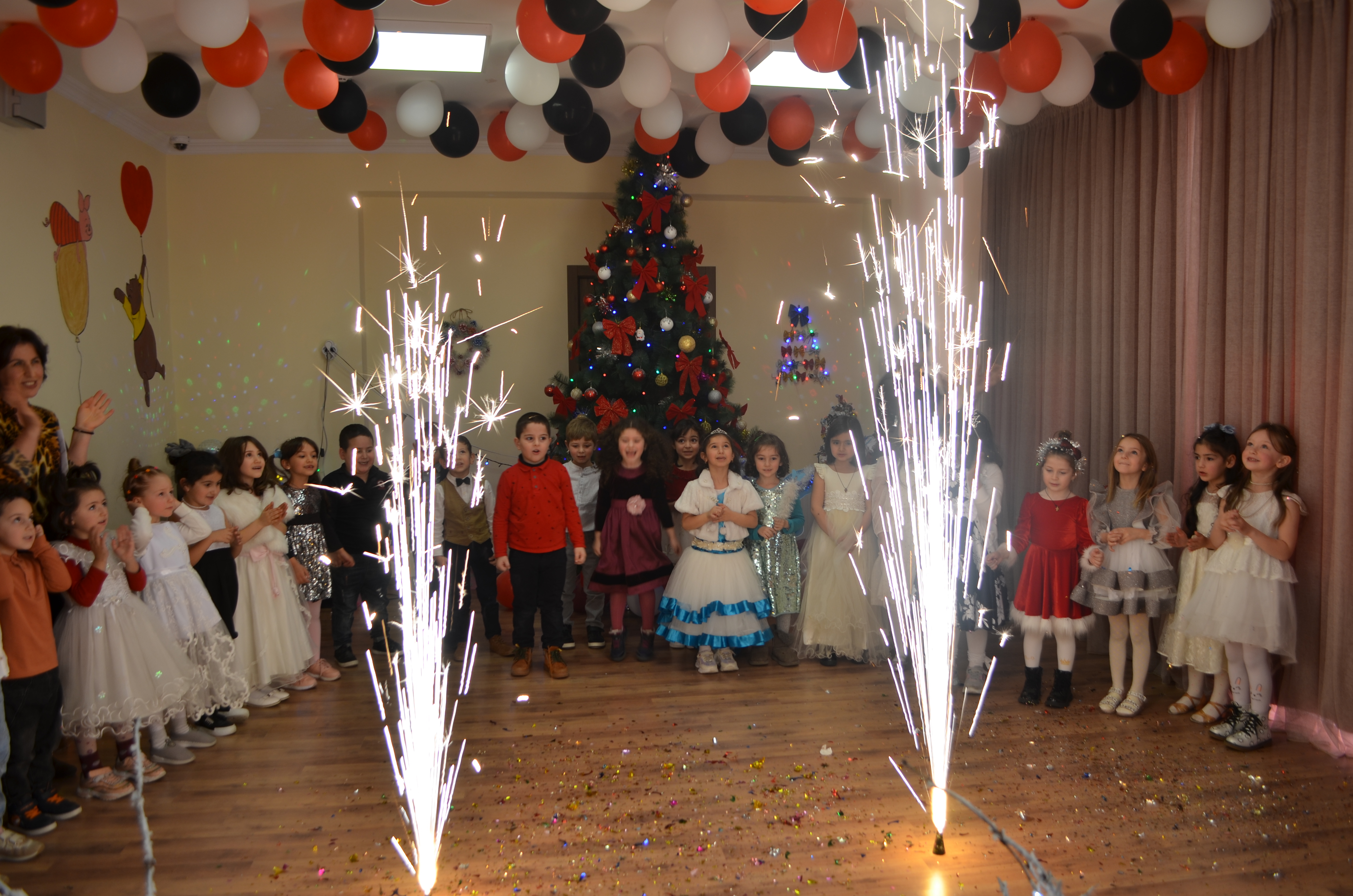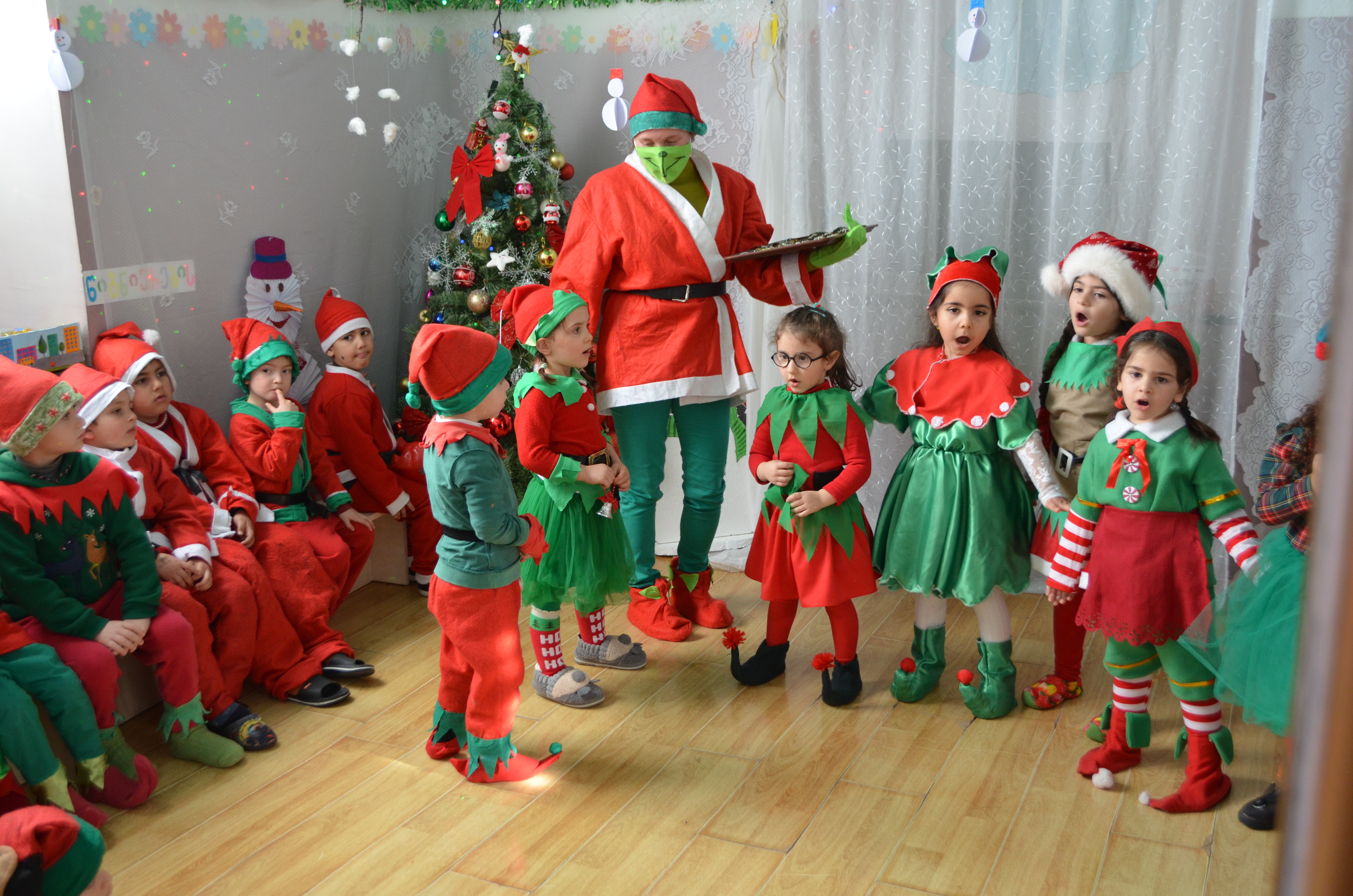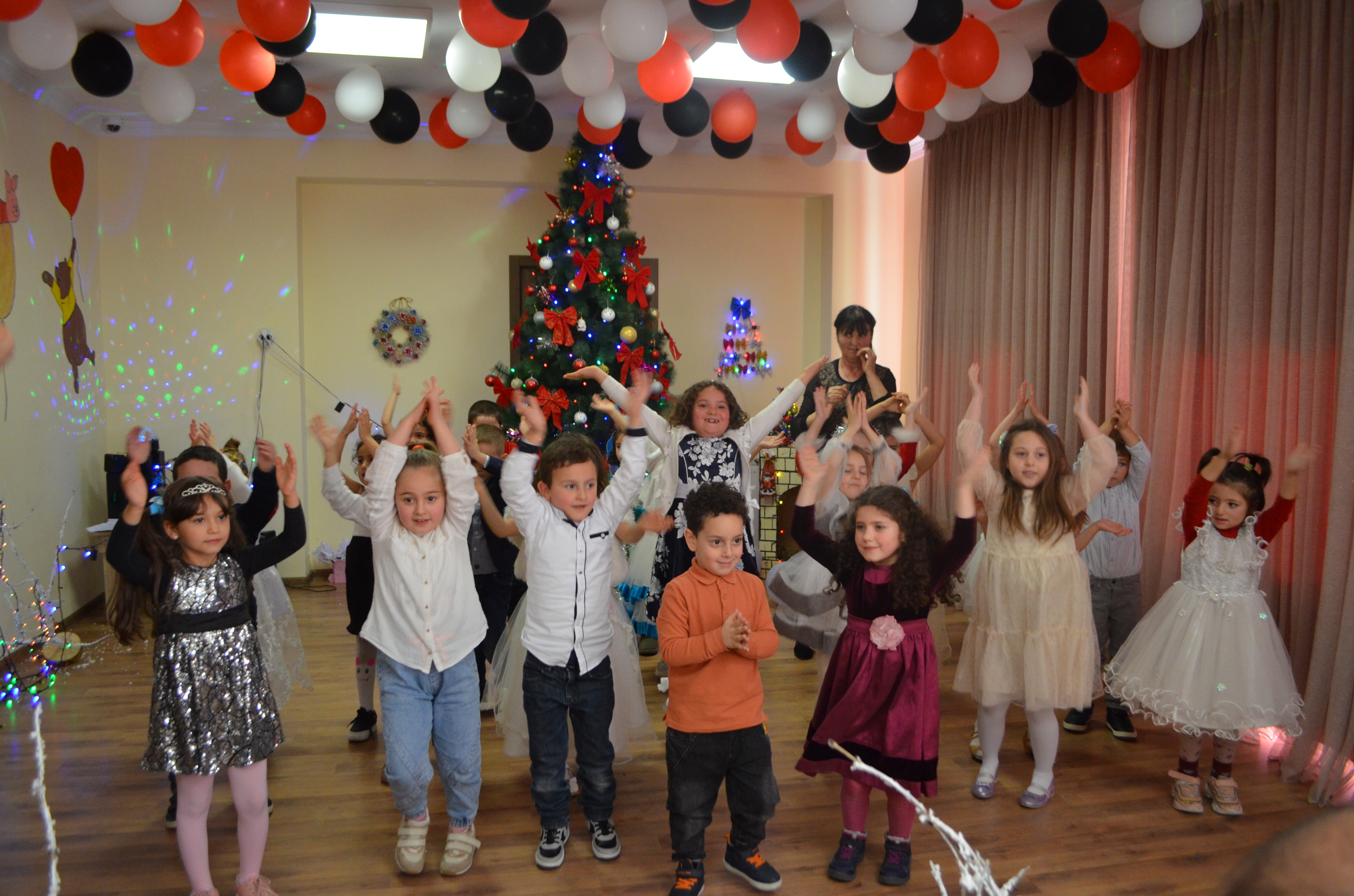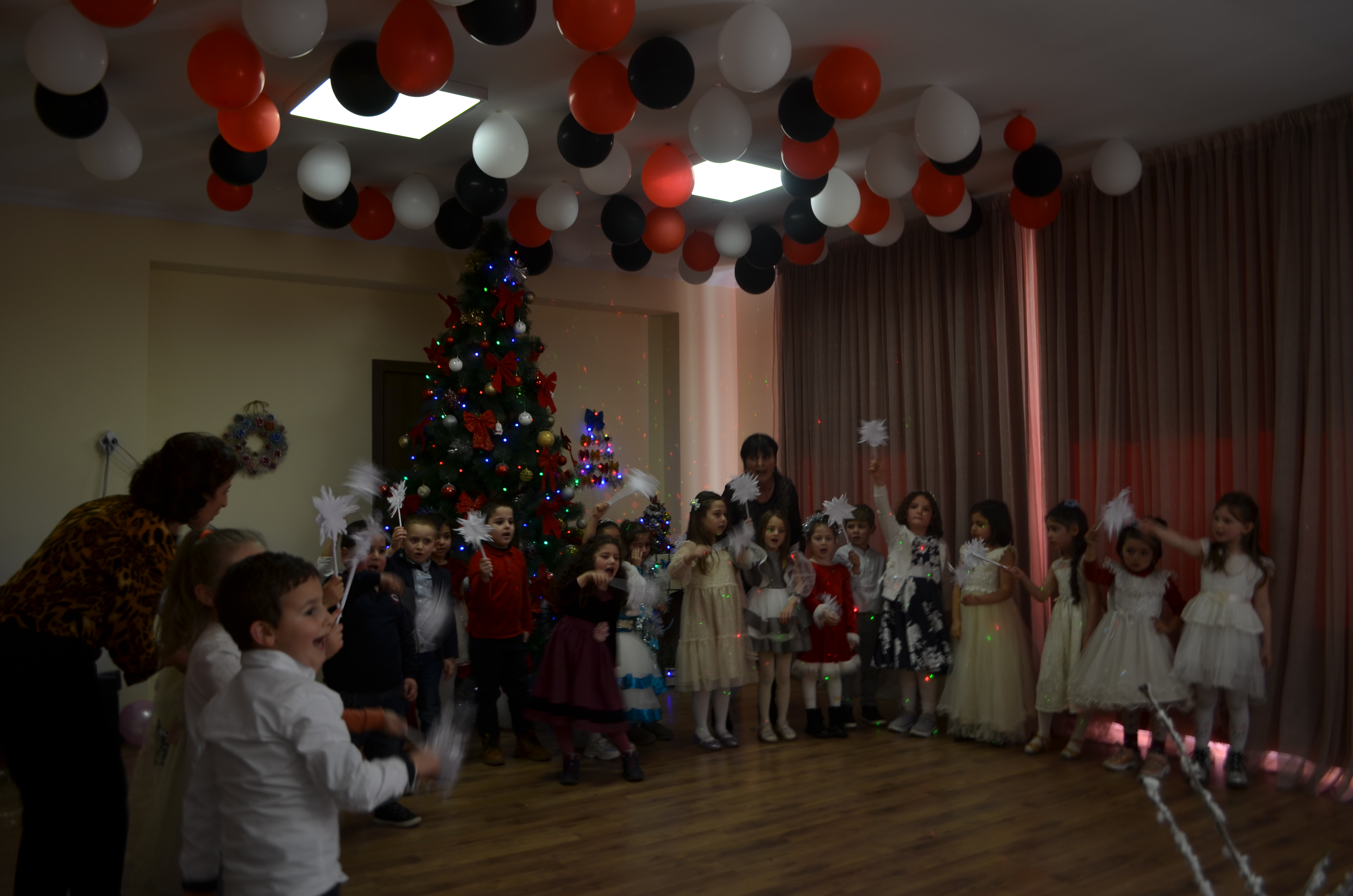 აღსაზრდელებმა ახალი წლის ზეიმზე ლექსები, სიმღერები წარმოადგინეს და სხვადასხვა ზღაპრის გმირები განასახიერეს.