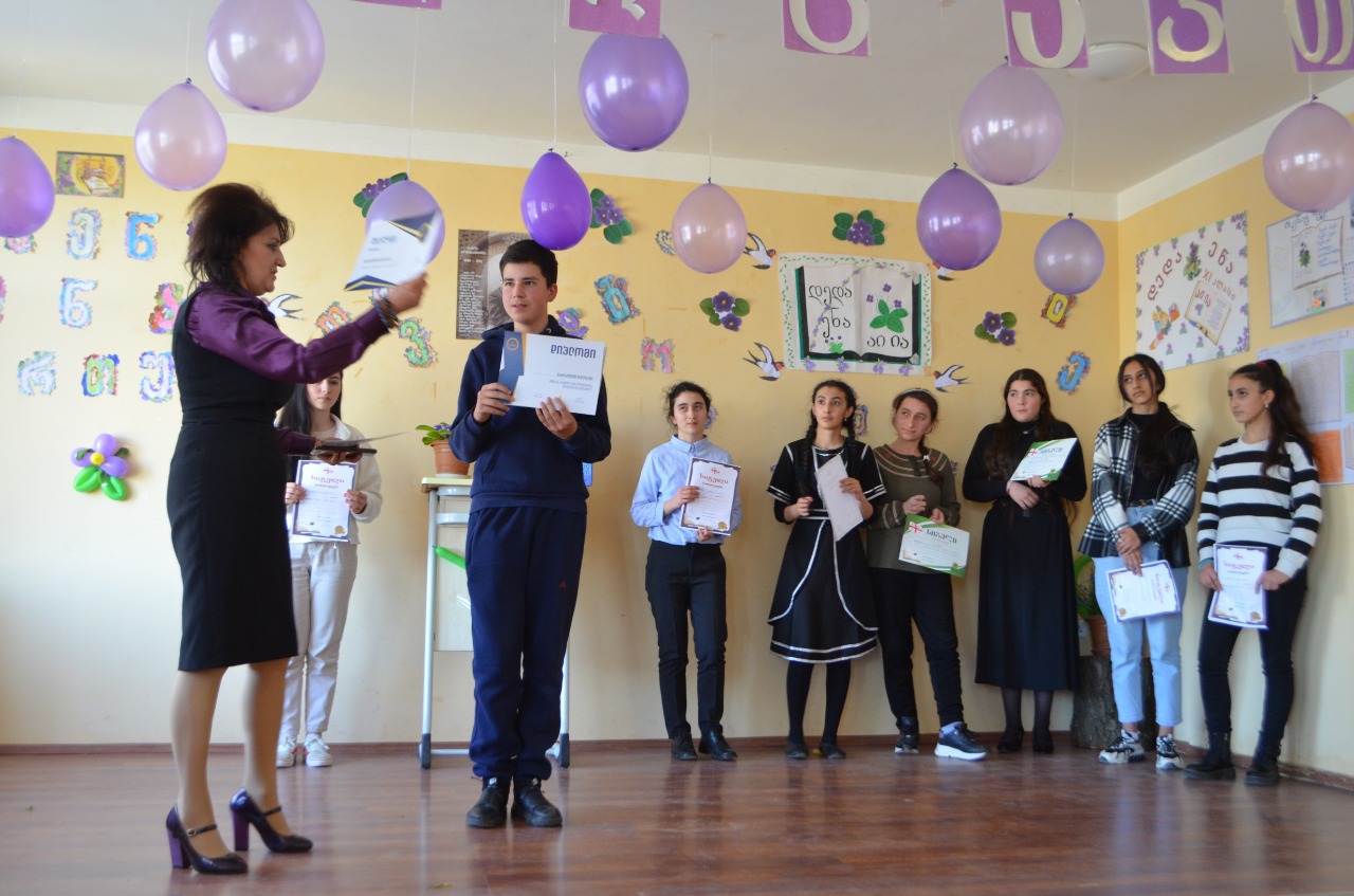 ღონისძიების დასასრულს პედაგოგებმა, კალიგრაფიის კონკურსში გამარჯვებულ მოსწავლეებს სიგელები გადასცეს.