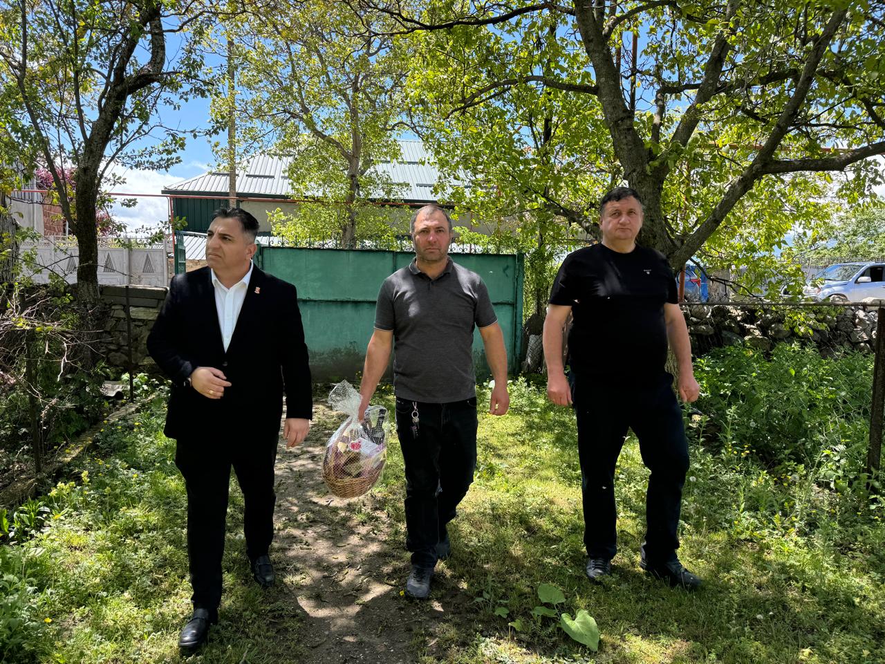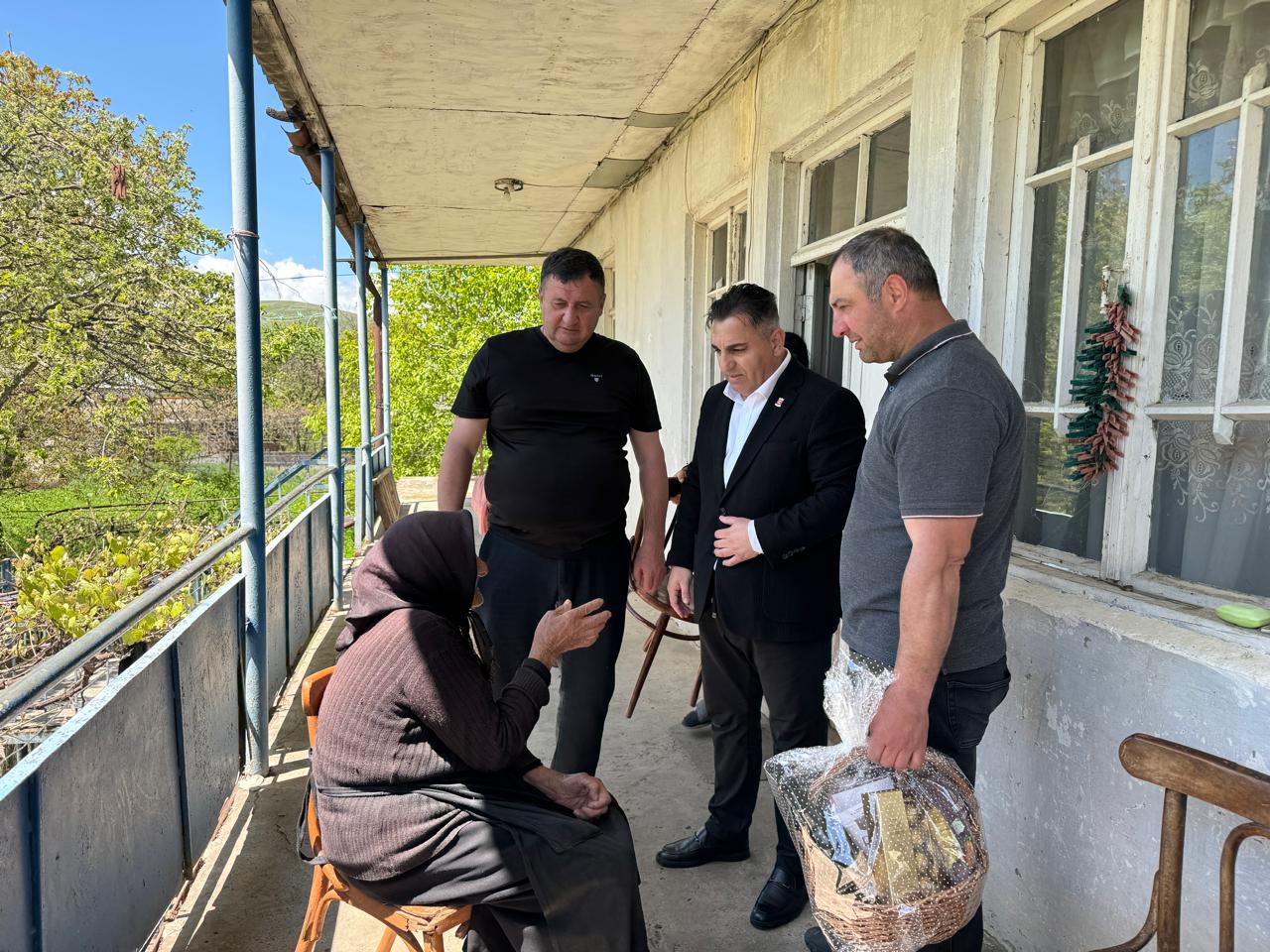 ამავე დღეს, მერიის სახელით სამამულო ომის ვეტერანებთან გათანაბრებულ სამ პირს სასაჩუქრე კალათები გადაეცათ.