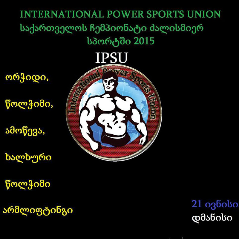 | მიმდინარე წლის 21 ივნისს, ქ. დმანისში, კულტურისა და ხელოვნების ცენტრის დარბაზში (წმ. ნინოს ქ №56.) გაიმართება საქართველოს ეროვნული ჩემპიონატი ძალისმიერი სპორტის შემდეგ სახეობებში: ძალისმიერ ორჭიდში, უსასრულო წოლჭიმში, უსასრულო ამოწევაში, არმლიფტინგში და ბიცეფსზე აწევაში - IPSU-ს ვერსიით. დასაწყისი - 11.სთ.30 წთ. |