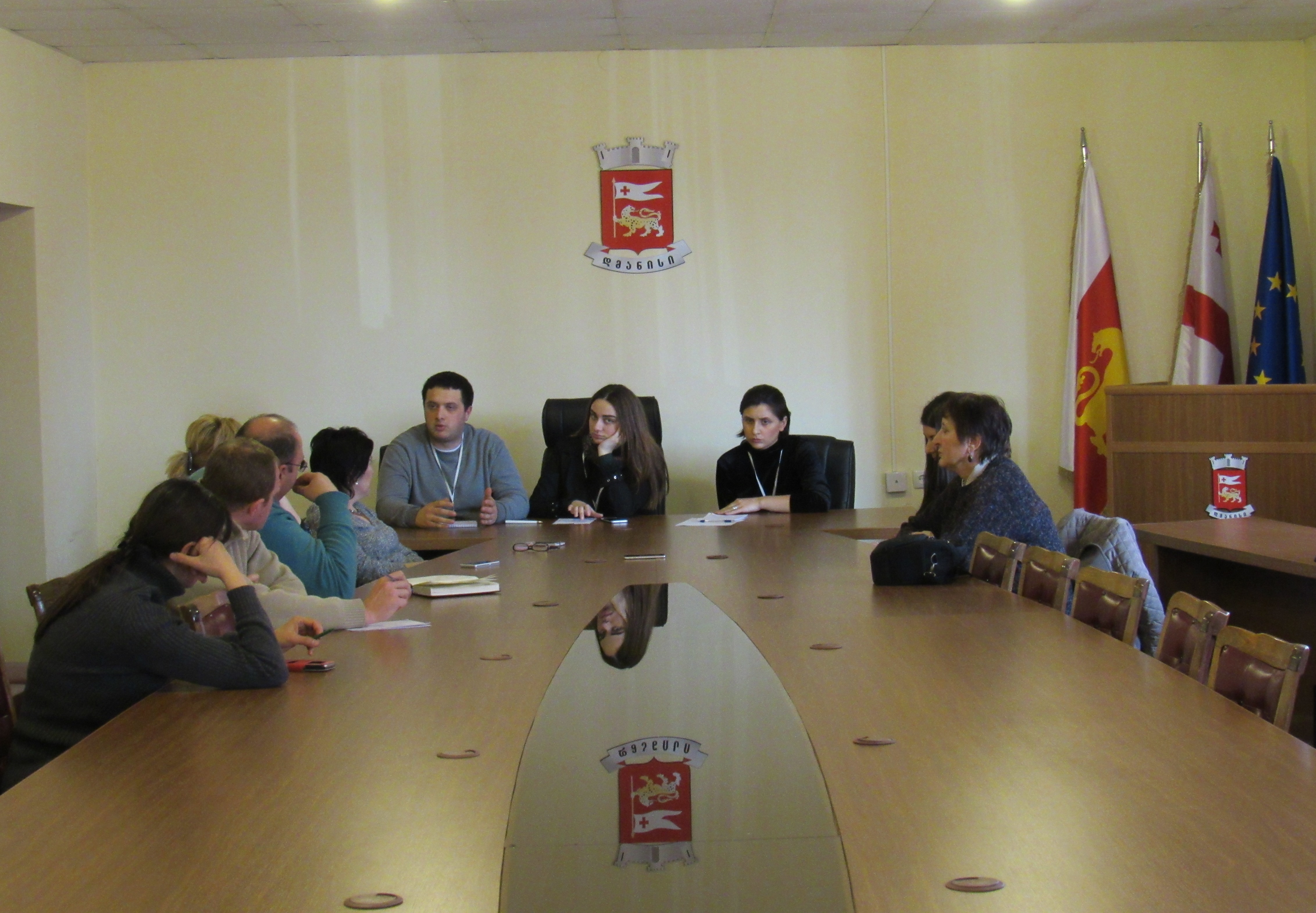 გამგებელთან შეხვედრის შემგე ახალგაზრდებმა გადაინაცვლეს გამგეობის საკონფერენციო დარბაზში, სადაც მუნიციპალიტეტის თანამშრომლებთან მოეწყო დისკუსა, მხარეებმა კვლევების შედეგების, აღნიშნულ დოკუმენტში წარმოდგენილი პრობლემებისა და მისი გადაჭრის გზებზე იმსჯელეს.