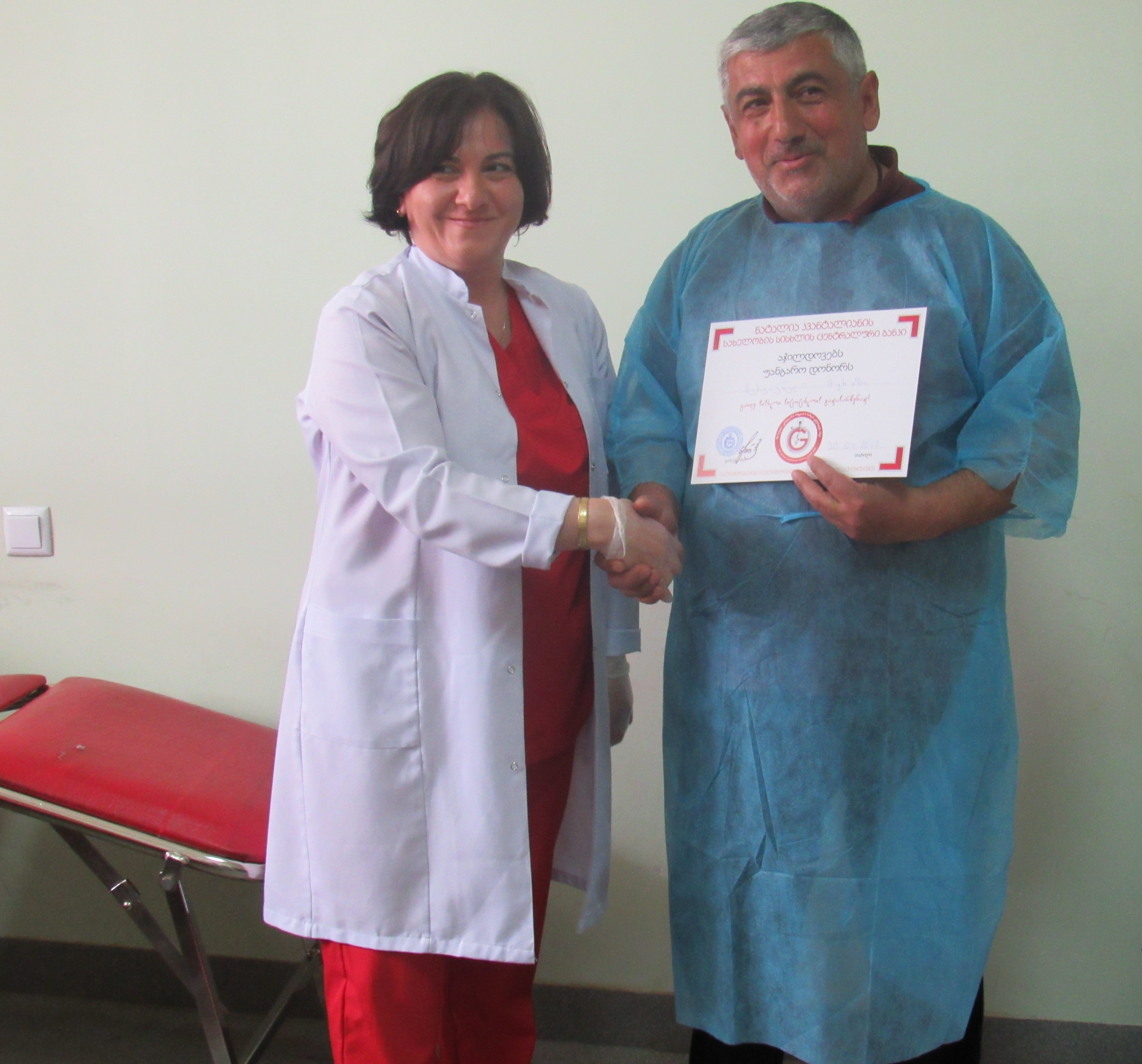 ნატალია კვანტალიანის სახელობის სისხლის ცენტრალური ბანკის ექიმების განმარტებით სისხლის დონაცია უსაფრთხო პროცესია. გარდა რეციპიენტისა, სარგებელს სისხლის დონორიც იღებს, რადგან სისხლის გაცემის პროცესი სისხლში ახალი უჯრედების წარმოქმნას უწყობს ხელს, რის შედეგად სისხლი ახალგაზრდავდება. დონორთა მიერ ჩაბარებულ სისხლს კომპლექსური ანალიზატორების წყალობით, ფართო სპექტრის, მაღალი ხარისხის გამოკვლევები უტარდება.