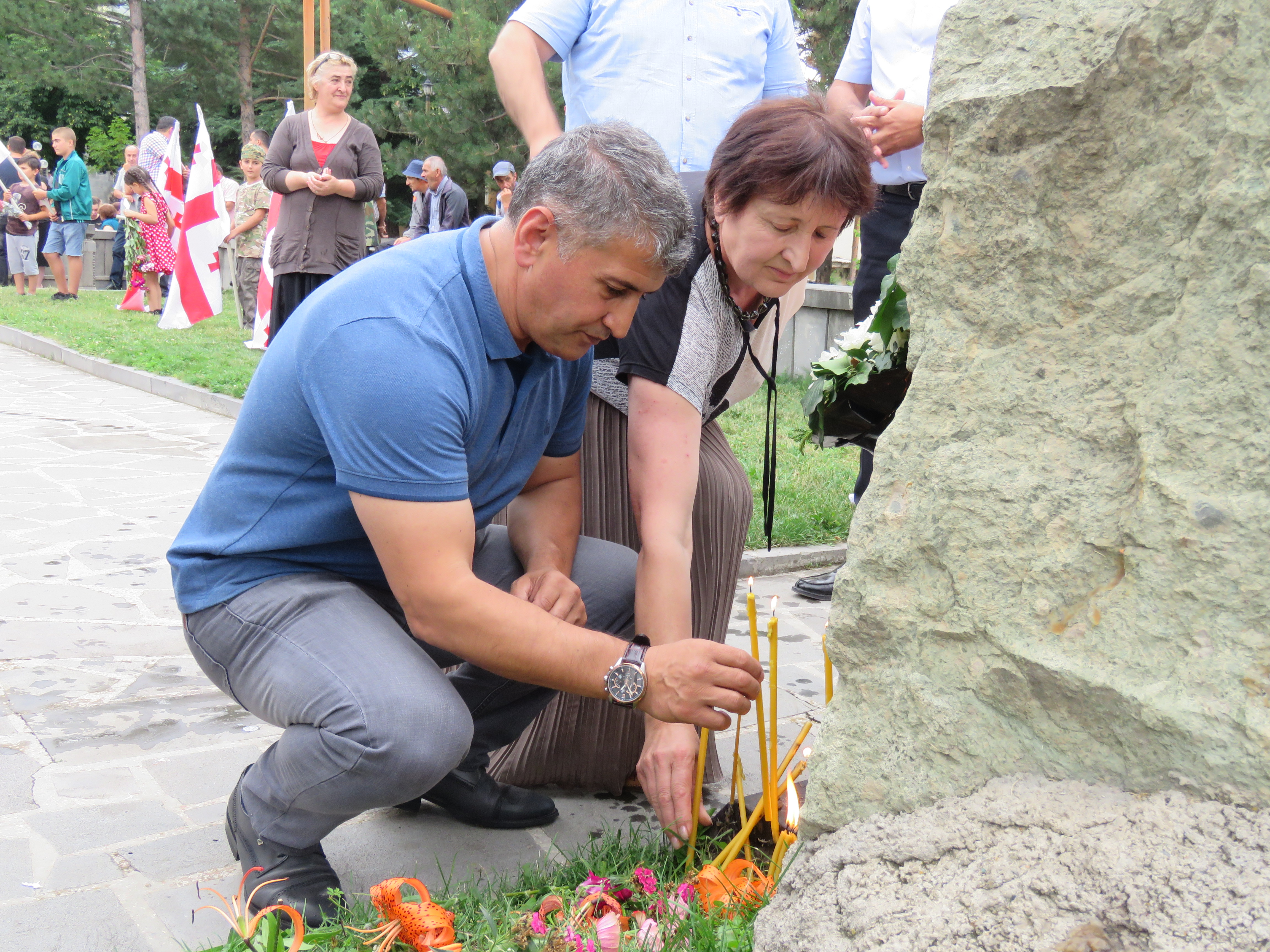 საქართველოს ერთიანობისთვის დაღუპულ გმირთა მემორიალი შეიმკო ყვავილების გვირგვინით და ანთებული სანთლებით.