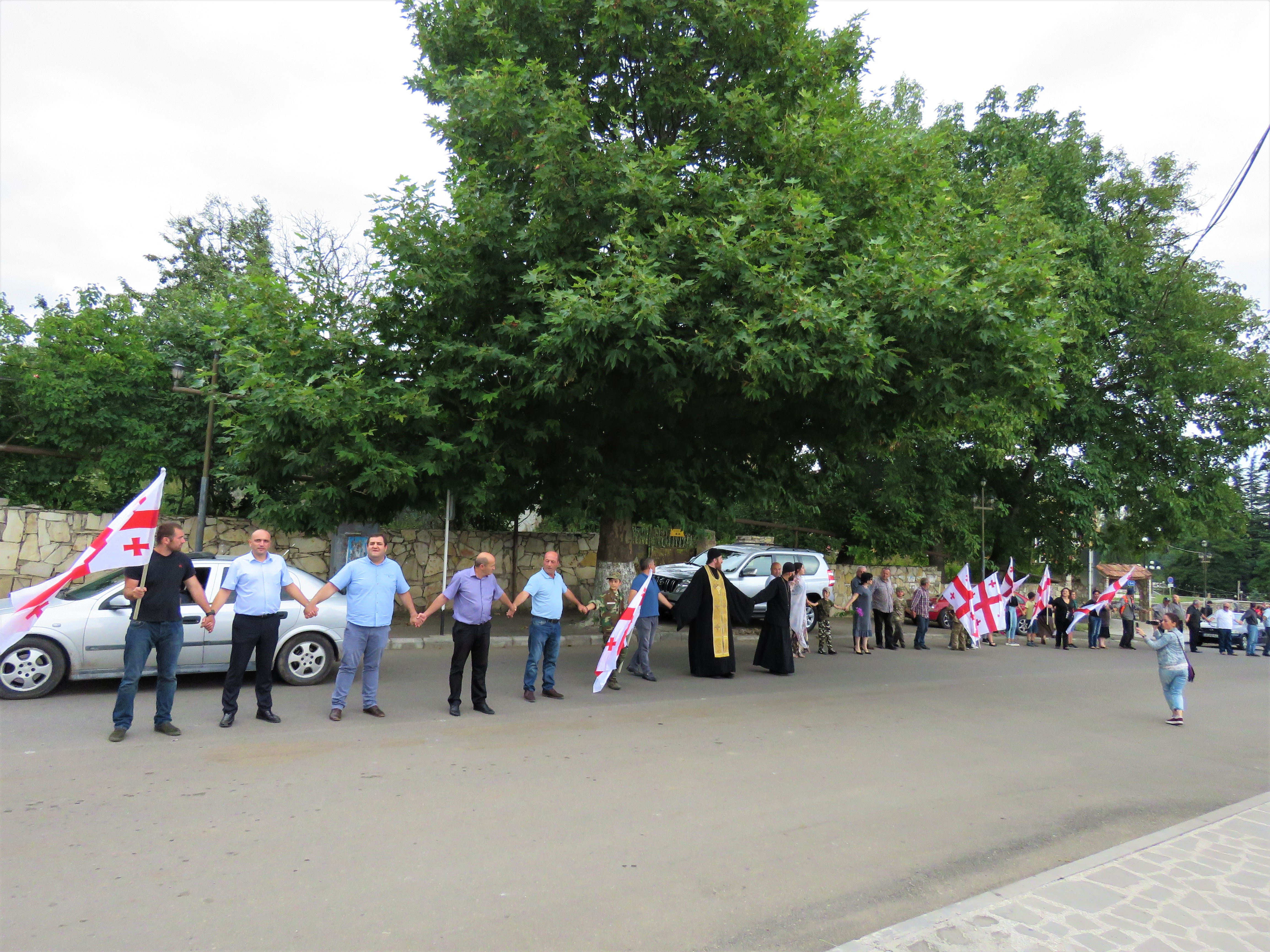 გმირთა მემორიალთან შეკრებილმა მოქალაქეებმა საქართველოს ოკუპაციას და ქვეყნის ერთიანობისათვის ბრძოლა ,,ცოცხალი ჯაჭვით“ დააფიქსირეს.