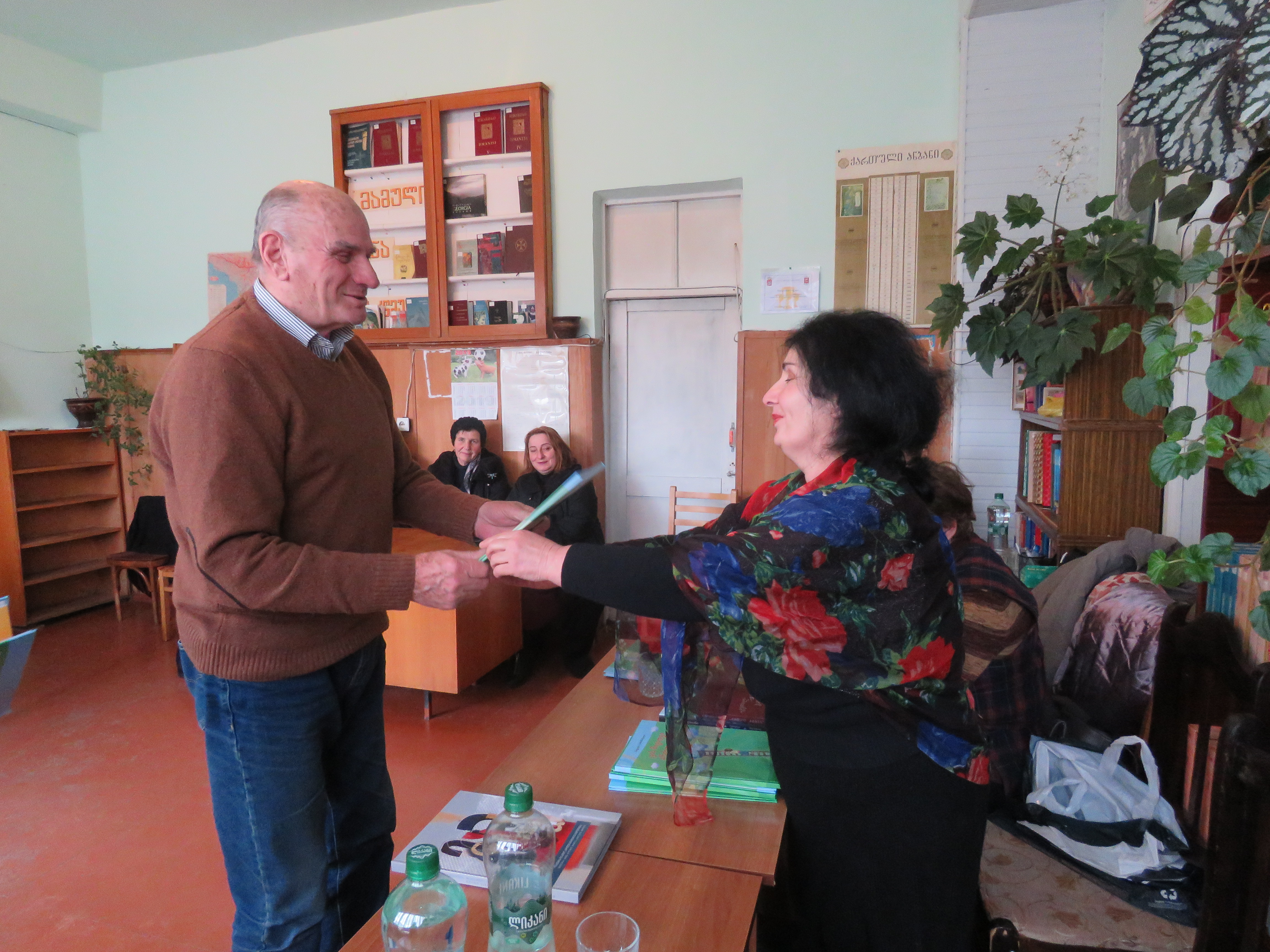 საბიბლიოთეკო სამსახურმა სიმბოლური საჩუქრები გადასცა ქალბატონ მაყვალა სიმონიშვილსა და ბატონ ავთანდილ ნარსავიძეს.