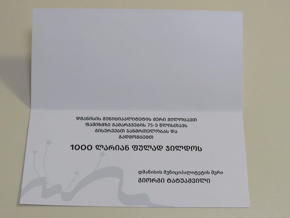 დმანისის მუნიციპალიტეტის მერის-გიორგი ტატუაშვილის ინიციატივით, თითოეულ მათგანს საჩუქრად გადაეცა სასურსათე კალათები და მუნიციპალიტეტის ბიუჯეტიდან გამოეყოთ ფულადი თანხა 1000 ლარის ოდენობით.