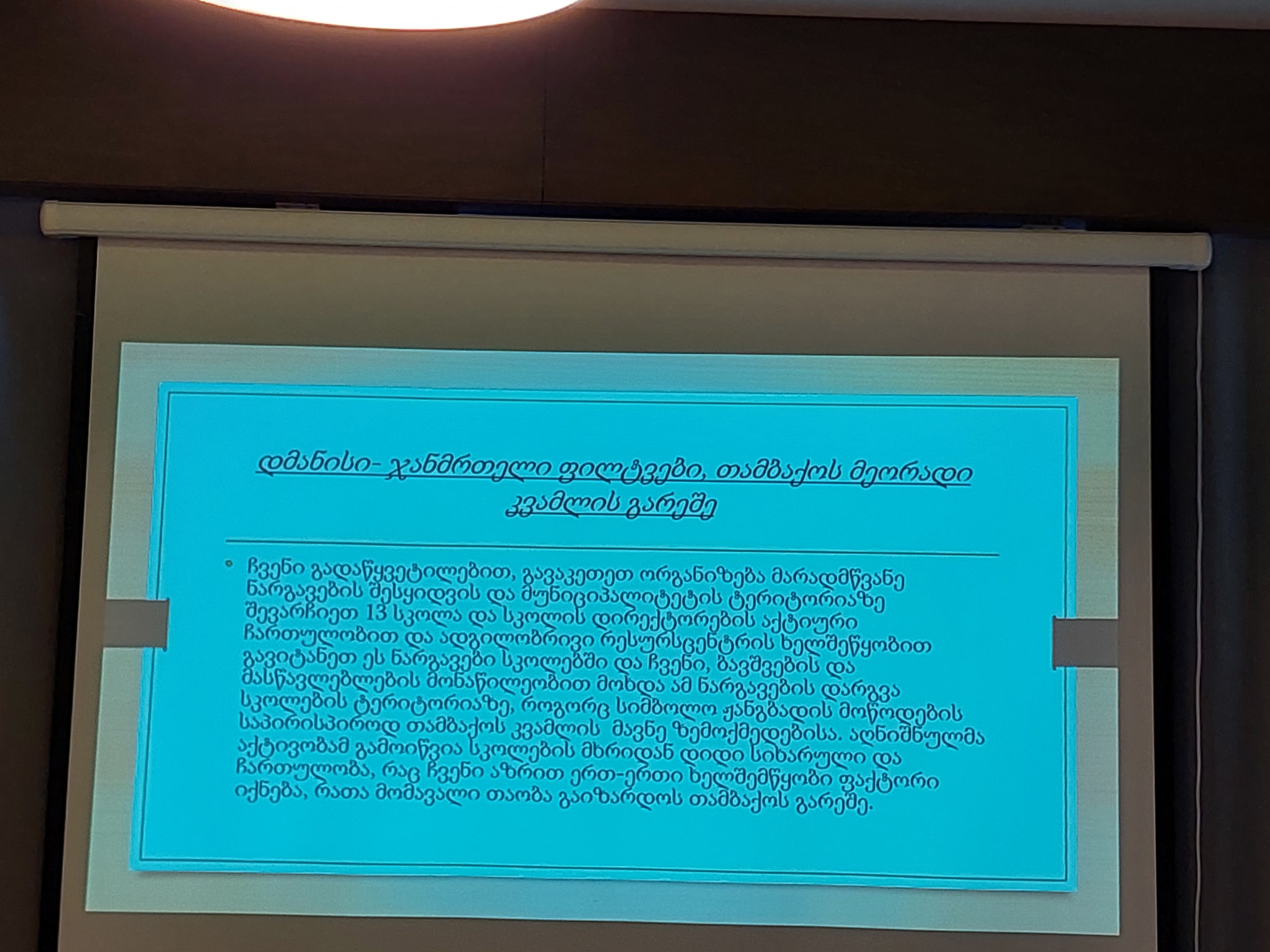 29 მარტს ღონისძიება გაიმართა "საქართველო თამბაქოს კვამლის გარეშე", სადაც პრეზენტაციით წარსდგა დმანისის საზოგადოებრივი ჯანდაცვის ხელმძღვანელი, რომელმაც ისაუბრა პროექტის ფარგლებში"საქართველო თამბაქოს კვამლის გარეშე" განხორციელებულ აქტივობებზე და დმანისის მუნიციპალიტეტის თვითმმართველობასთან თანამშროლობით გასატარებელ ღონიძიებებზე. ეს დღე ყოველწლიურად სხვადასხვა პრიორიტეტული თემის გაცნობით აღინიშნება. წელს ის საზოგადოების ჩართულობას მიეძღვნა. საზოგადოების როლი და პოზიტიური გავლენა გადამწყვეტია თამბაქოს მოხმარების პრევენციისთვის. ღონისძიება დაავადებათა კონტროლისა და საზოგადოებრივი ჯანმრთელობის ეროვნული ცენტრის ორგანიზებითა და ჯანმრთელობის მსოფლიო ორგანიზაციის მხარდაჭერით გაიმართა.