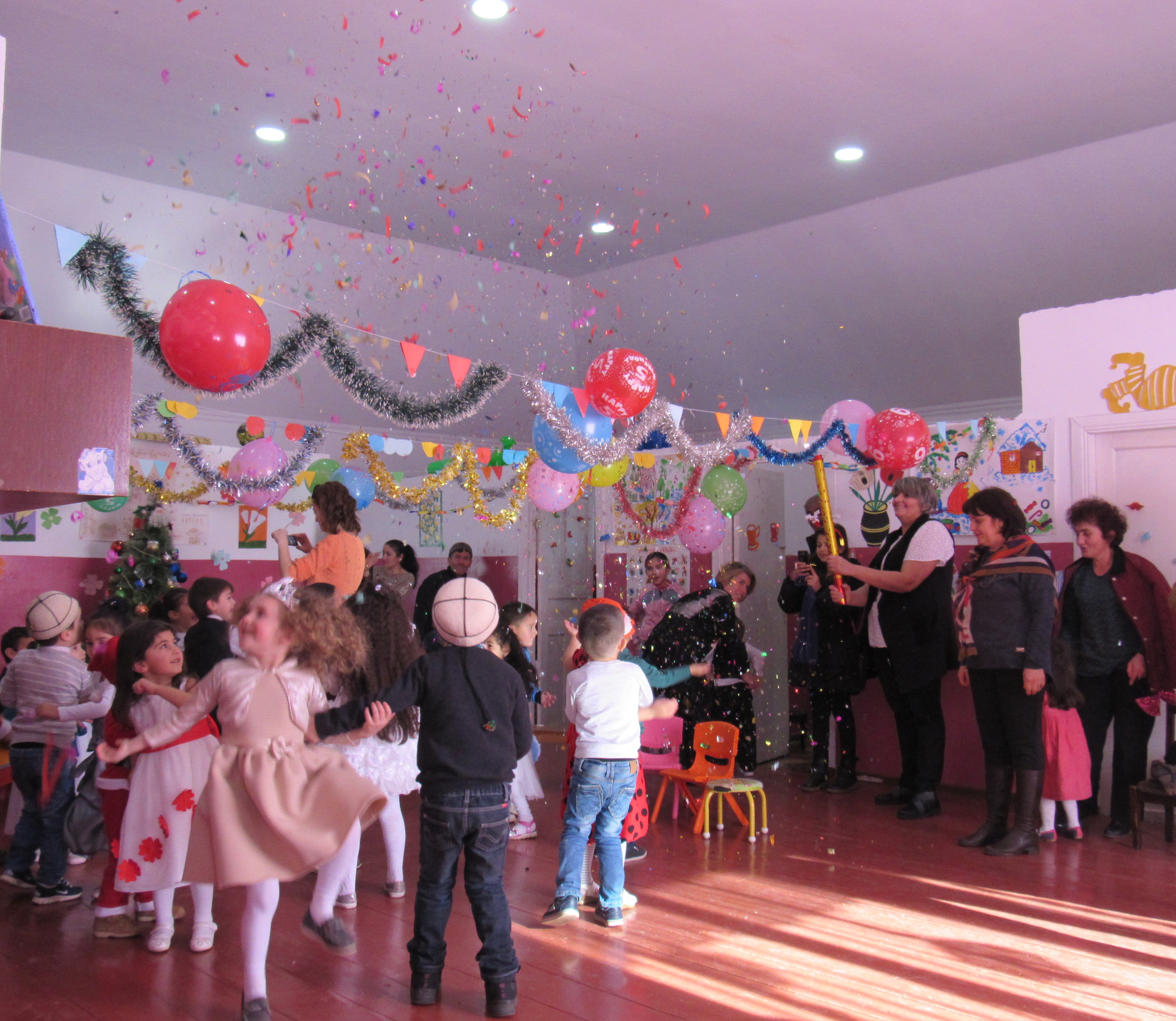 პატარებს დამდეგი ახალი წელი ტკბილეულით მიულოცა თოვლის ბაბუამ. ბავშვების მიერ წარმოთქმული ლექსები, სიმღერები, ცეკვები და ხალისიანი განწყობა დიდხანს ემახსოვრება ზეიმზე მყოფ საზოგადოებას.